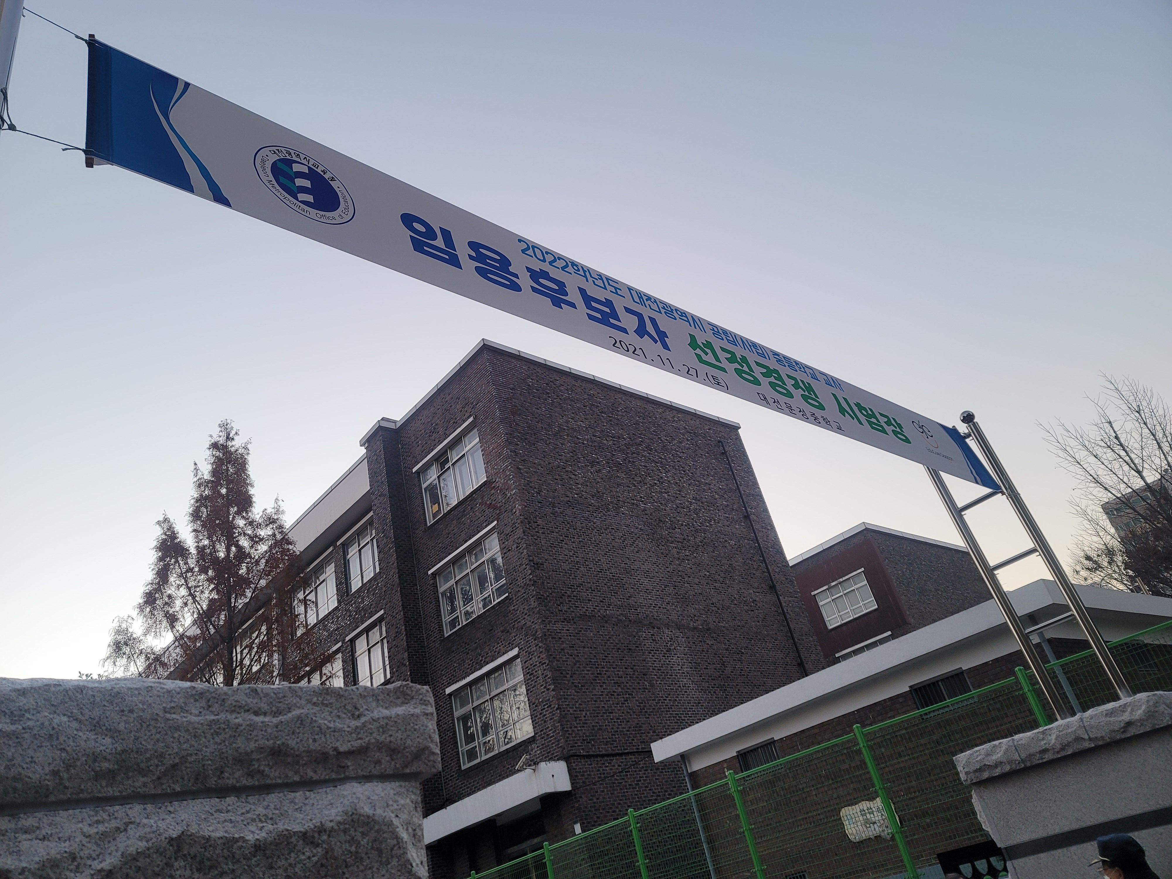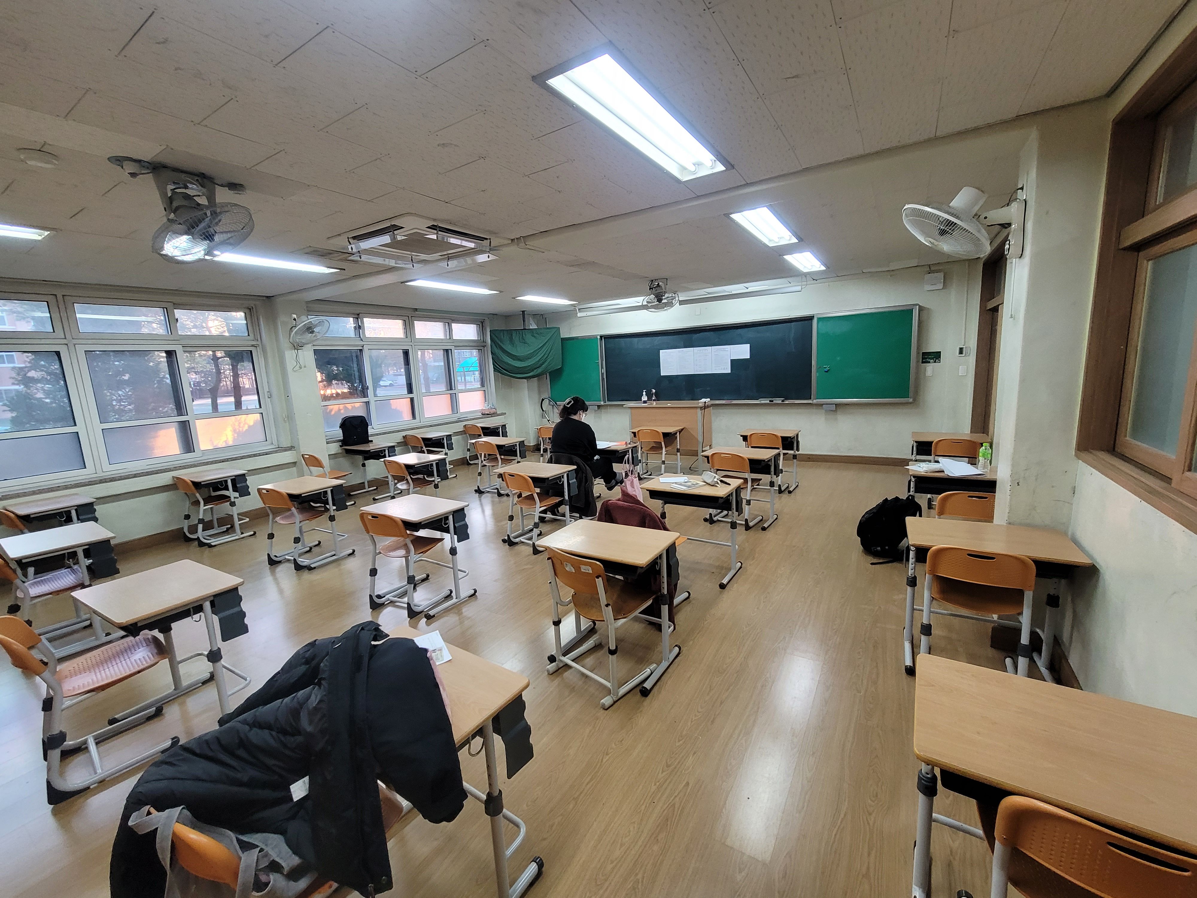 6시 55분에 모텔에서 나와 고사장까지 걸어갔다. 춥지 않은 날이고 구름도 끼지 않은 맑은 날이다 보니 새벽의 어둠이 금세 가시더라. 상쾌하게 새벽 조깅을 하듯 학교까지 걸어갔다. 학교에 도착한 시간은 7시 15분이었는데 작년이나 재작년은 7시 30분 입실임에도 먼저 온 사람들은 먼저 들어갈 수 있도록 배려를 해줬던 데 반해 여긴 그러지 않더라. 그래서 교문 앞에서 대기하고 있는 부모님과 수험생이 꽤 보였다. 코로나로 인해 입실시간에 맞춰 체크를 하고 들어가야 한단다.
