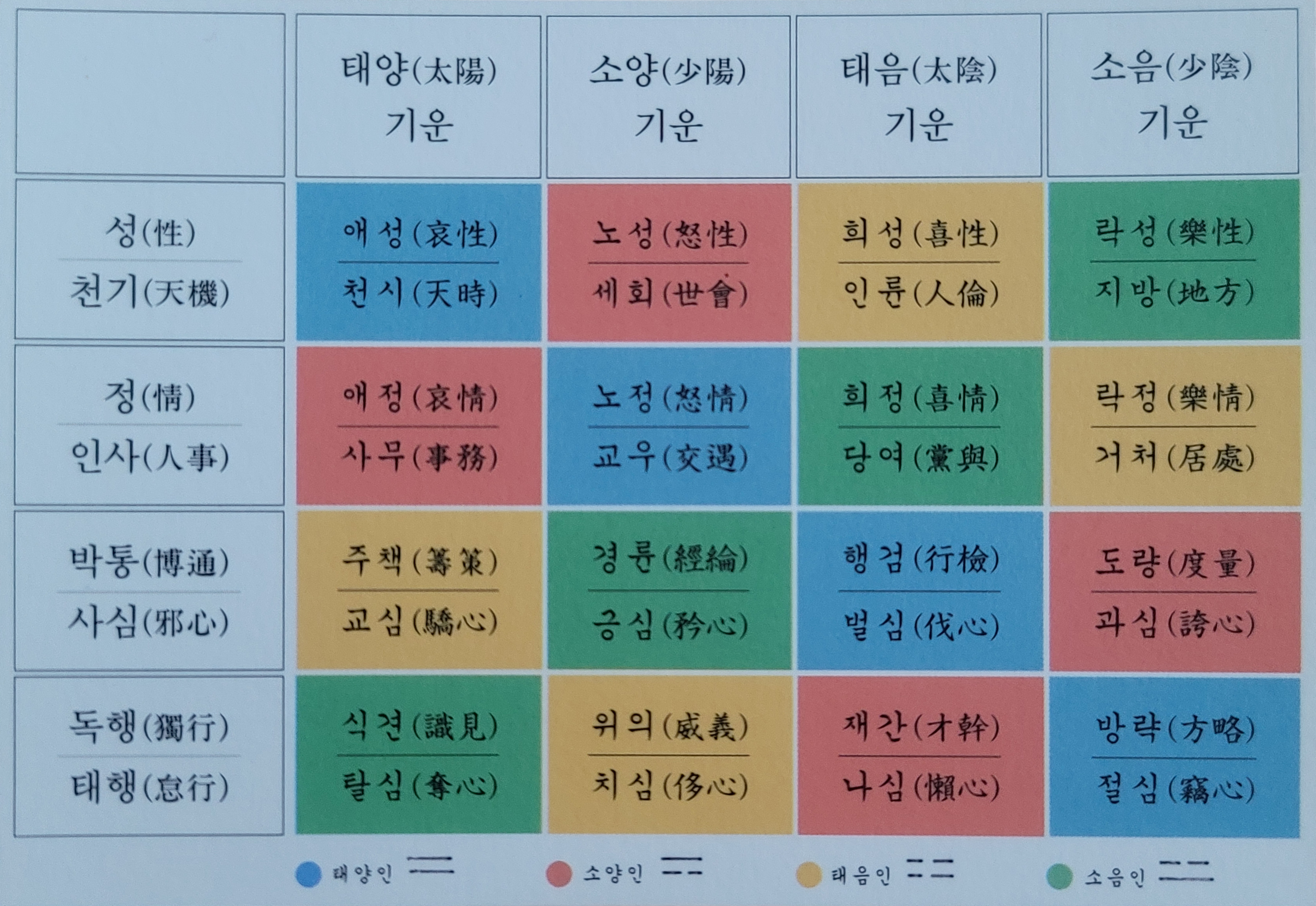 태음인은 폭이 확보되어야 비로소 서로 연계성을 가지고 개념화, 일반화가 가능해진다. 소음인은 깊이를 가져야 비로소 영역의 확대가 가능해지는 것이다. 깊이를 추구하는 방식을 열심히 쫓다 보면 자연스레 적용 가능한 영역도 넓어진다. 그 넓이가 세회(世會)의 대부분의 영역에 적용 가능한 논리성을 가지게 되었을 때 그것을 경륜(經綸)이라 부르는 것이다. 그러니 가히 ‘절세의 경륜(經綸)’이라 부를 만한 것이 된다. 그렇다면 긍심(矜心)은? 깊이가 부족한 상태에서 영역을 마구 뛰어넘는 것이다.