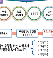 ⑤ 평가 (evaluation) | 학습자들이 학습한 결과를 측정, 평가하는 부분임 - 단순한 지필시험이나 선다형 문제가 아니라 평가기준표를 이용하여 측정함 | |