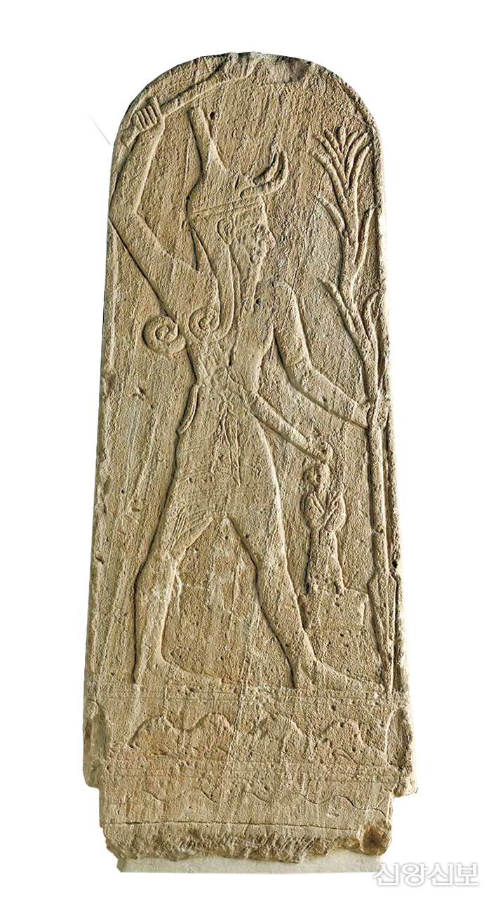 이것이 바로 바알(Baal) 신이다. 라스샴라(Ras-Shamra)에 있는 바알 신전의 BC 14세기 스텔레 부조이다. 왼손에 잡고있는 나무는 비옥한 초생달 지대의 주목인 삼나무인데 성서에는 백향목으로 나온다. 예루살렘 성전도 이 나무로 지었다. 그 끝은 창모양으로 되어 있어 전투적 성격도 있다. 오른손에 치켜든 것은 인도의 인드라신이 들고 있는 금강저와 같은 벼락방망이이다. 바알이나 제우스나 인드라나 모두 벼락의 신이며, 구름을 타고 다니며 풍우기상을 지배하기 때문에 다산성 (fertility)의 상징이며, 사랑과 풍요의 신이다. 바알은 가나안의 토착 신이며 셈족어로 ‘주인’ ‘남편’ ‘주님’의 뜻이다.