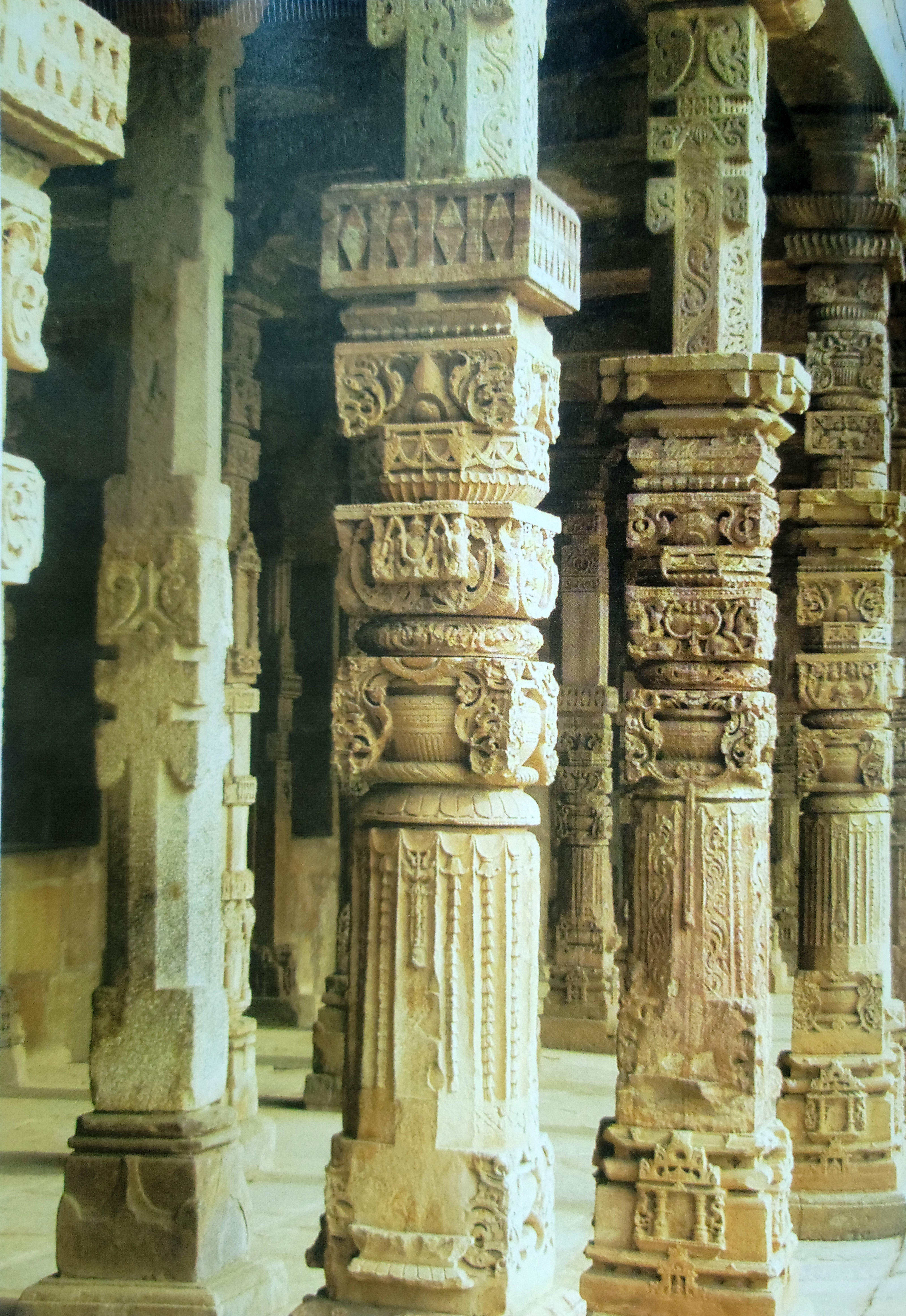 ▲ 이 사원은 이슬람 마스지드(모스크)인데도 불구하고 힌두 모티프의 석주들로 가득차있다. 27개의 힌두사원을 파괴하고 그 석재를 이슬람 사원의 건자재로 그냥 활용했기 때문이었다. 양대 종교의 충돌과 융합의 현장이랄까?