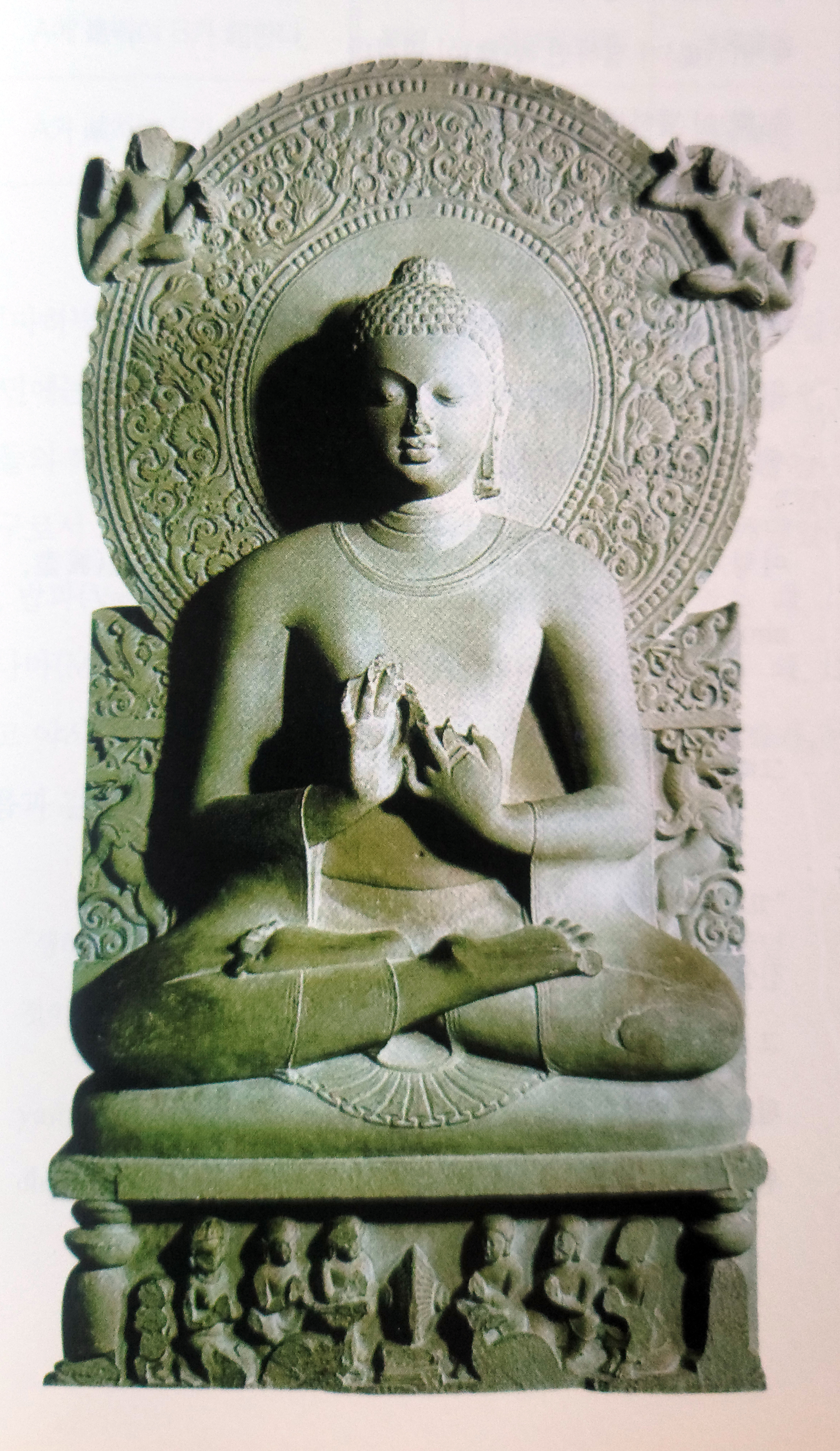 ▲ 불교에서는 붓다의 설법을 ‘진리의 수레바퀴를 굴린다’(전법륜, 轉法輪)라고 한다. 따라서 그의 최초의 설법을 초전법륜이라 한다. 이 초전법륜의 모습은 반드시 전법륜 수인(다르마차크라무드라, dharmacakramudrā)이라는 양식으로 표현된다. 엄지와 검지를 말아 바퀴모양을 만들고 한 손은 바닥이 보이게 하고 한 손은 등이 보이게 하여 대는데 여러 변양이 있다. 연좌대아래 바퀴가 있고 주변에 설법을 듣는 최초의 제자가 있다. 때로는 그 자리에 사슴이 있기도 하다. 아잔타석굴의 불상은 대체로 초전법륜상이다. 사르나트 고고학박물관의 내면의 초전법륜상은 굽타시대 는 16 사이로 추정). 높이 160cm