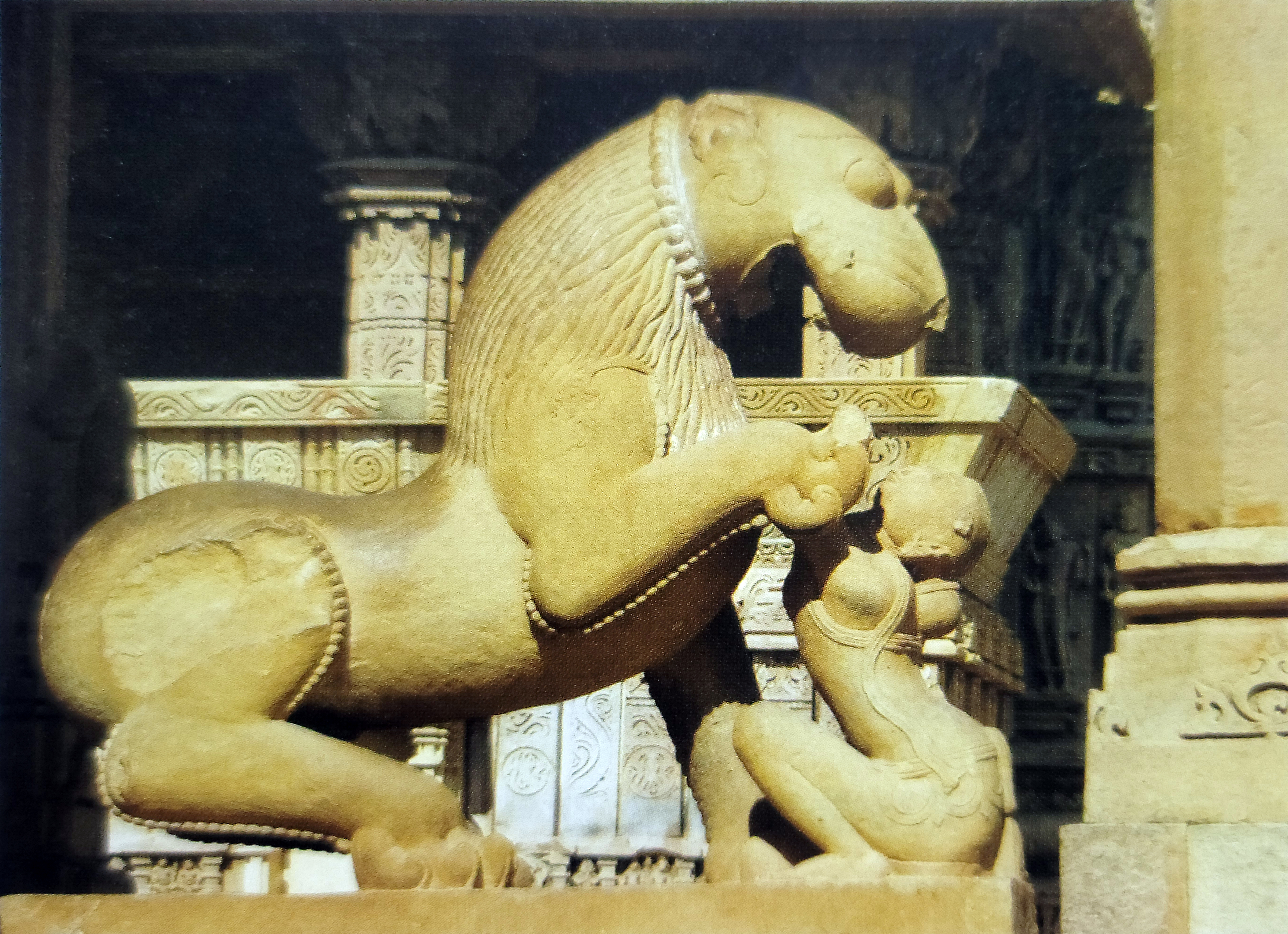 ▲ 사원 입구에 서있는 샤르둘과 소년상의 다른 모습. 카주라호의 사원들은 AD 950~1050년 사이에 집중적으로 지어졌다. 85개가 지어졌는데 무슬림 왕조들의 파괴로 현재 22개만 남아있다.