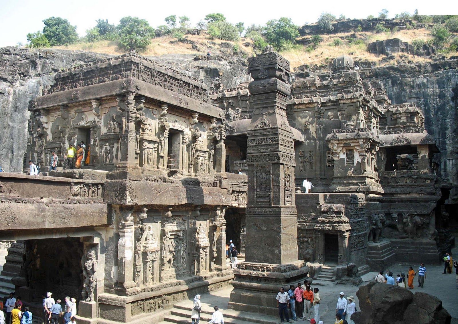 ▲ 엘로라(kailasanatha-ellora)의 비하라. 이 거대한 시바의 사원이 단 하나의 통돌 조각품이다. 한 구멍 한 구멍이 스님들이 수행하는 방이다. 한 구멍 한 구멍이 스님들이 수행하는 방이다. 오늘 우리가 살고 있는 원룸 아파트의 원형이라 할 수 있는 이 다층 건조물은 우리 아파트보다는 좀 살기 괴로운 곳이었을 것이다. 통풍이 전혀 안되는 돌구멍이기 때문이다. 지금은 박쥐들이 지키고 있다.