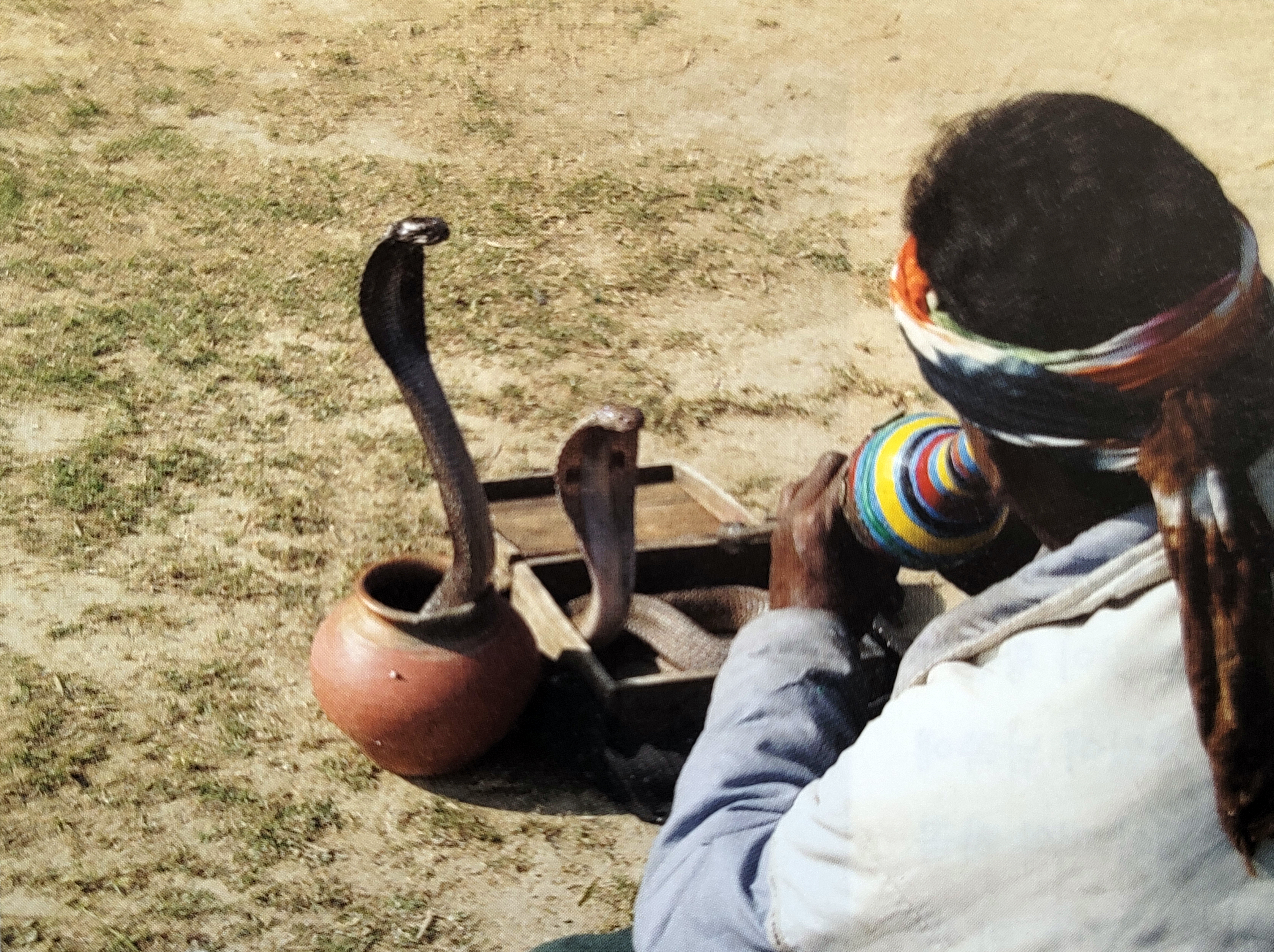 ▲ 인도의 토착종교인 나가 신앙의 주인공 코브라를 춤추게 만드는 뱀조련사, 인도인의 관념속에 코브라는 애ㆍ증의 콤플렉스로 남아있다.