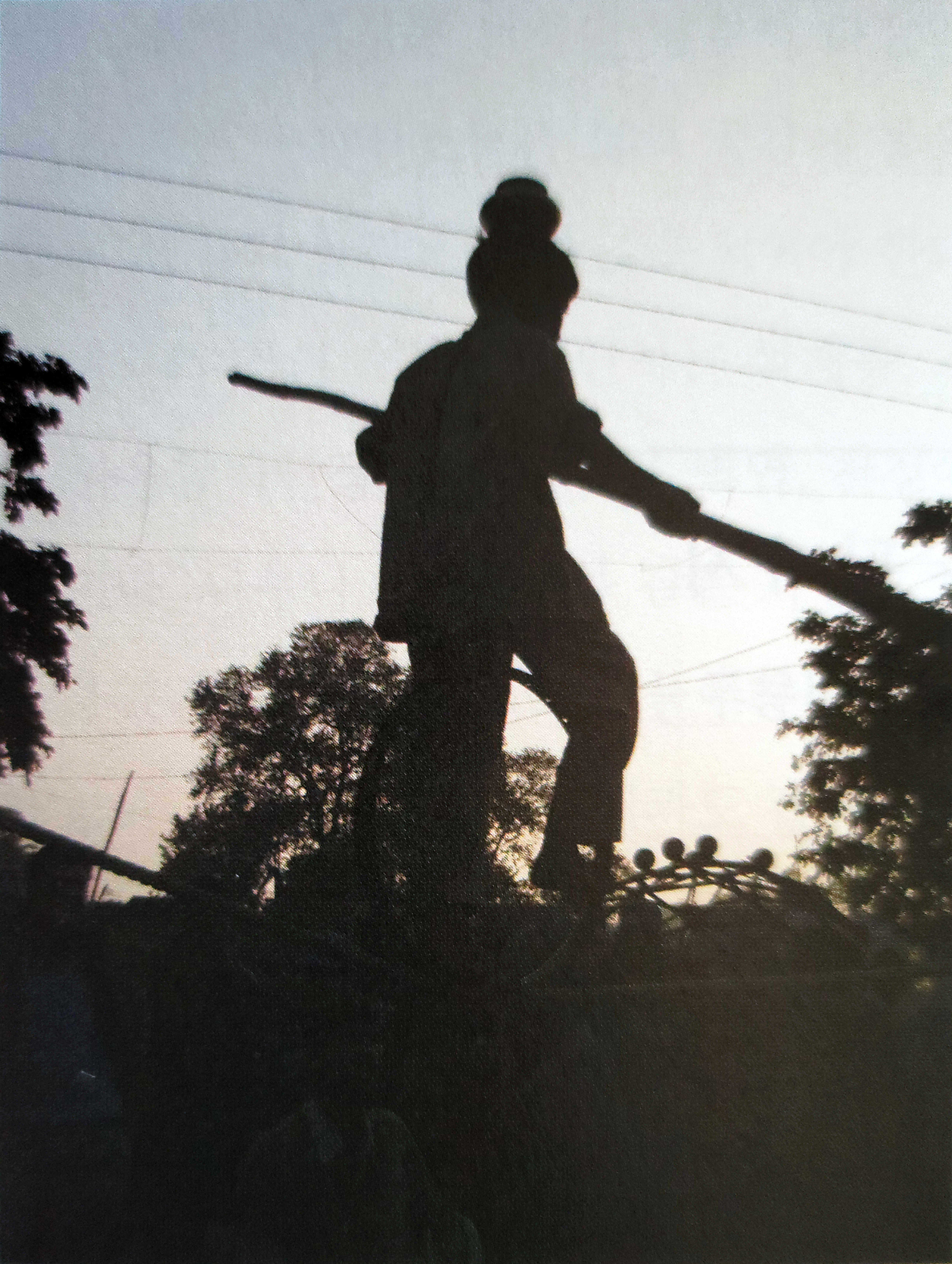 ▲ 아그라에서 카주라호로 가는 비행기가 또 취소되었다. 인도에서는 예고없이 임의대로 기차나 비행기의 일정이 취소되는 것은 다반사다. 책임지어 주는 사람이 아무도 없다. 하는 수 없이 아그라의 한 호텔에서 카주라호까지 가는 자동차를 대절해야만 했다. 고달펐지만 덕분에 인도인의 삶과 밀착된 여행을 할 수 있었다. 아그라의 시내 어느 장마당에서 머리에 사발을 이고 외발자전거를 타면서 줄타기를 하고 있는 소년의 가냘픈 모습을 여기 담았다.