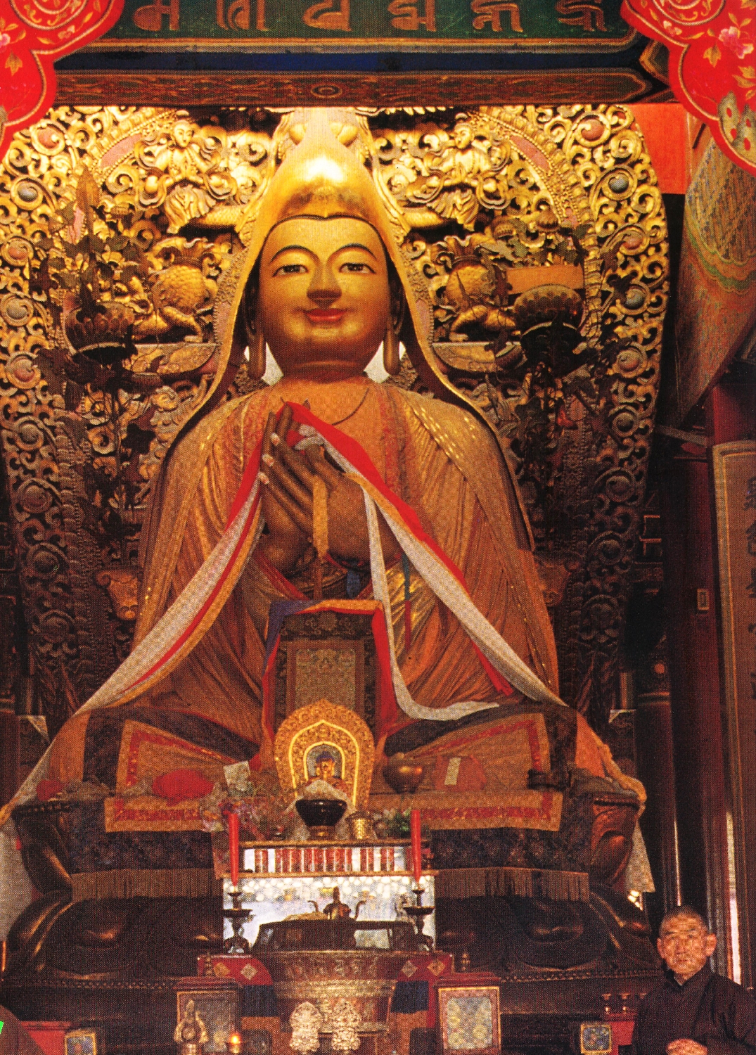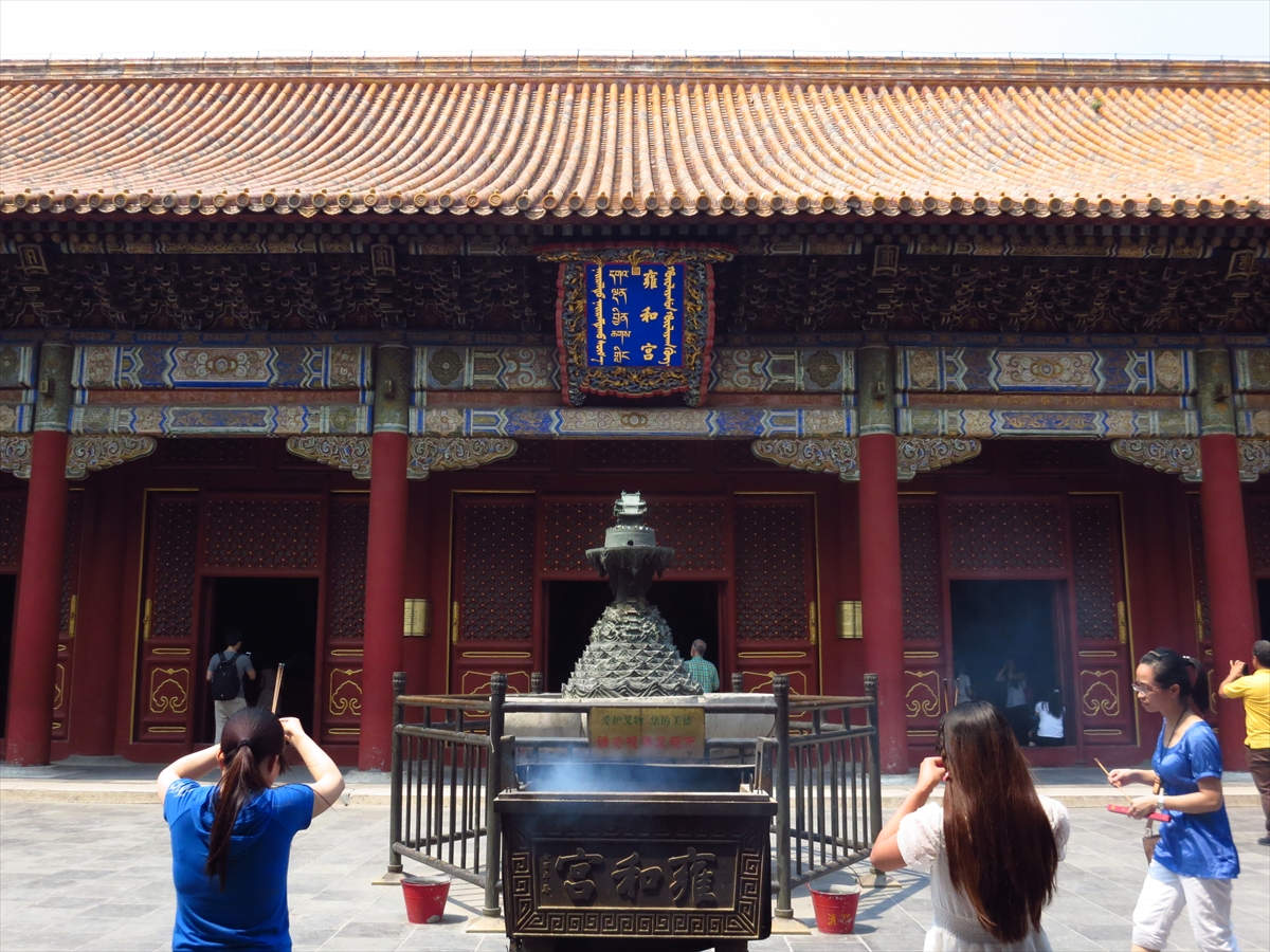 ▲ ’라마교’라는 표현은 있을 수 없다. ‘티벹불교’라 해야 옳다. 라마교라는 표현은 마치 한국불교를 ‘스님교’라고 부르는 것과도 같은 그릇된 표현이다. ‘라마’라는 말은 스승(구루)에 해당 되는 티벹어일 뿐이다. 청조는 티벹불교를 숭상하였다. 옹화궁(雍和宮)은 원래 옹정제의 동궁이었다. 건륭 9년(1744)에 이 궁을 티벹불교(라마교)의 사원으로 만들 었다. 그곳 법륜전(法輪殿)에 겔룩파의 시조 쫑카파(宗喀巴)의 거대한 상(6.1m)을 모셔 놓았다. 본 서를 편집하던 중 궁금하여 북경에 잠시 다녀왔다. 안정문(安定門) 부근에 자리잡고 있었다.