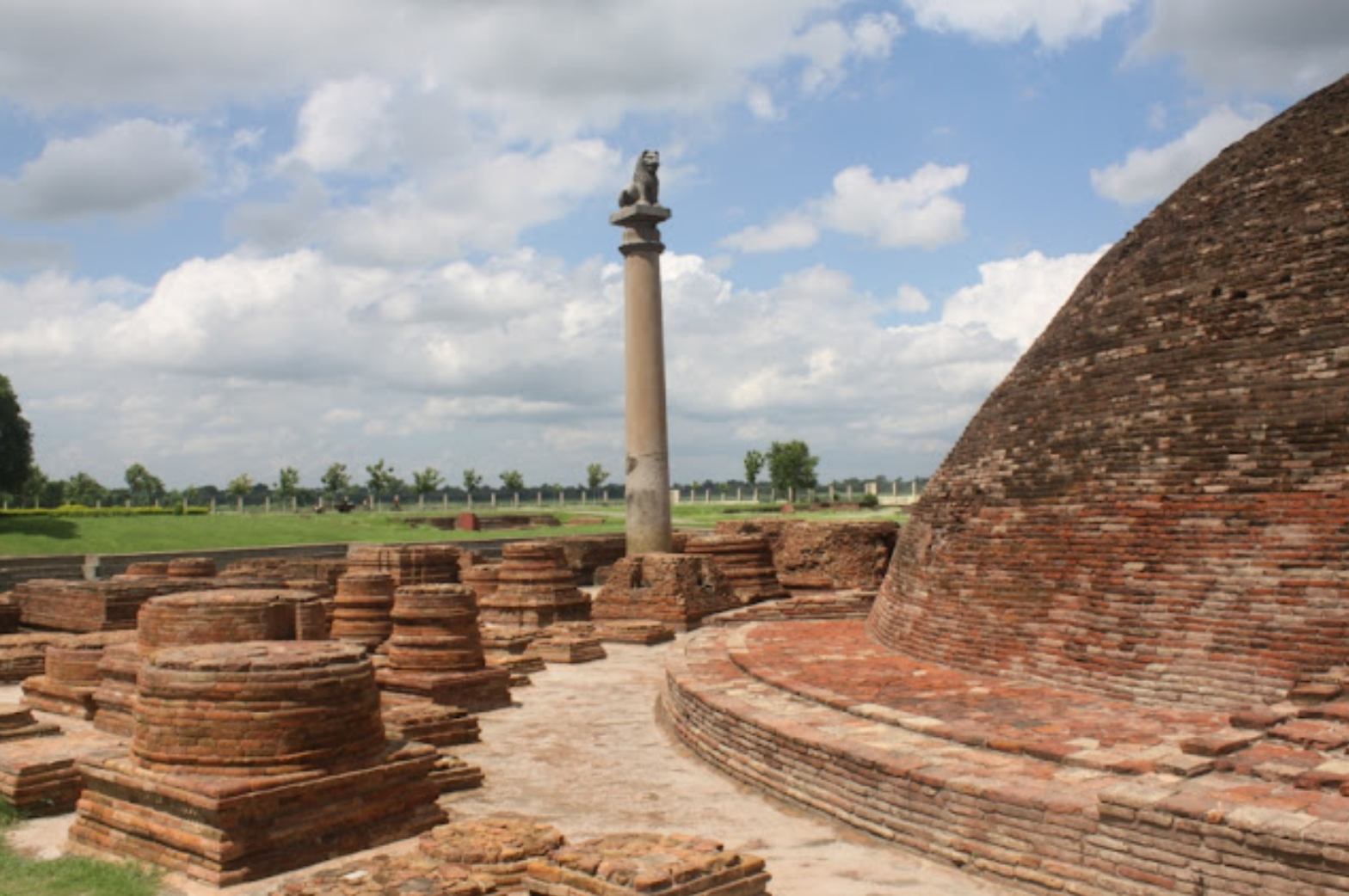 ▲ 바이샬리 아쇼카 석주가 있는 꼴후아 라뜨(Kolhua Lat) 전경, 이곳은 부처님이 오셨을 때 원숭이가 꿀을 봉양했다는 원후봉밀터이다. 부처님께서 걸식을 위하여 자신의 발우를 제자들 것과 같이 섞어 늘어놓았는데 원숭이가 부처님 것만 골라내어 꿀을 가득채웠다는 것이다. 그리고 수천마리의 원숭이들이 흙을 파서 부처님께서 목욕하실 수 있는 연못을 만들었다. 이 연못을 람쿤드(Ram-Kund)라 부른다. 아쇼카왕은 이를 기념하여 스투파(stūpa)와 석주를 세웠다.
