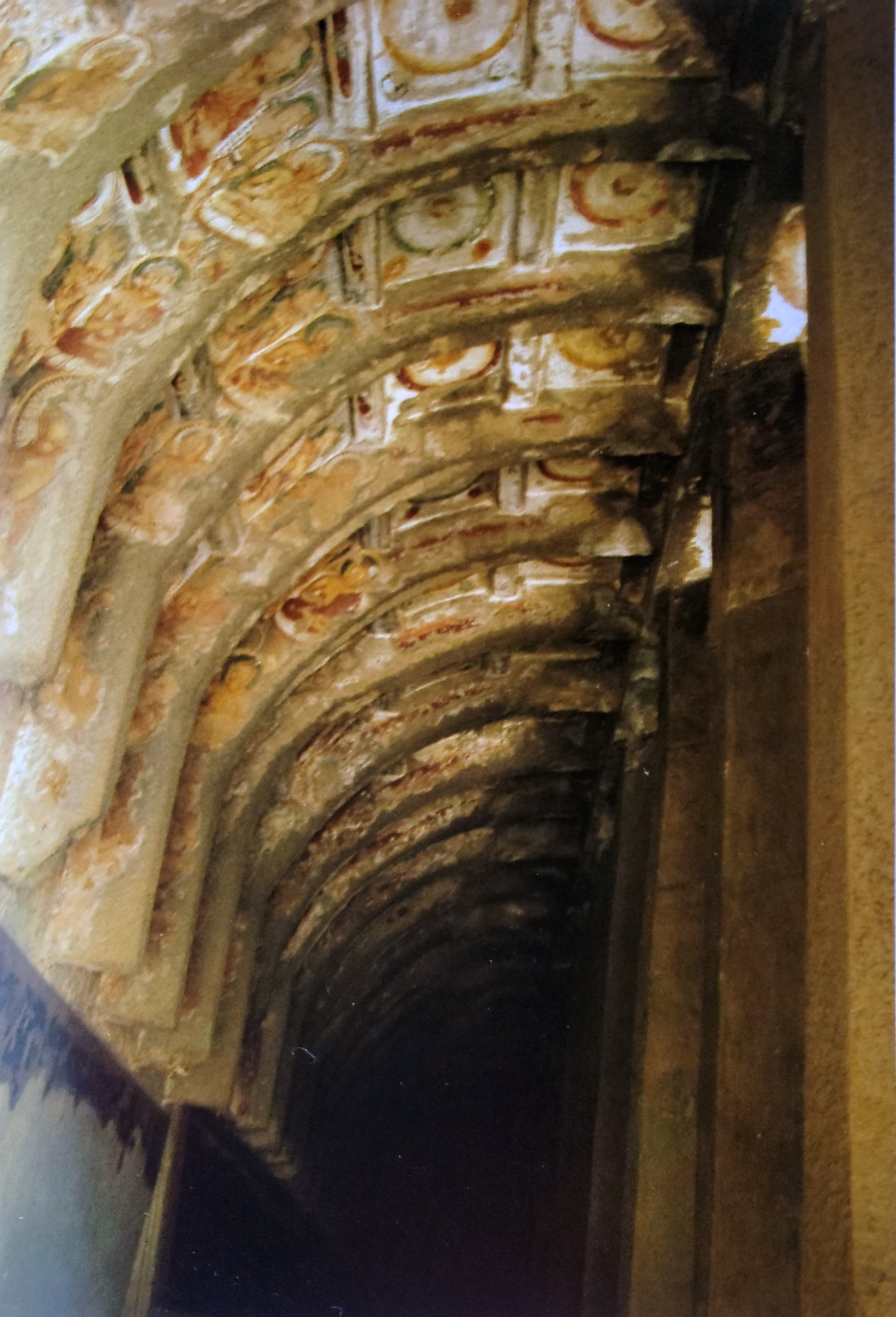 윗 사진이 바로 제10번 차이띠야의 내부 석주 양 옆으로 형성되어 있는 회랑의 모습이다. 이 10번 사원은 아잔타에서 가장 오래된 소승의 사원으로 추정된다. 1200년 동안 인적이 끊어진 데칸의 밀림 속에서 이 장엄한 석주와 찬란한 회화를 발견했을 때의 그 외경을 한번 상상해보라! 스미스의 싸인이 새겨져 있다.
