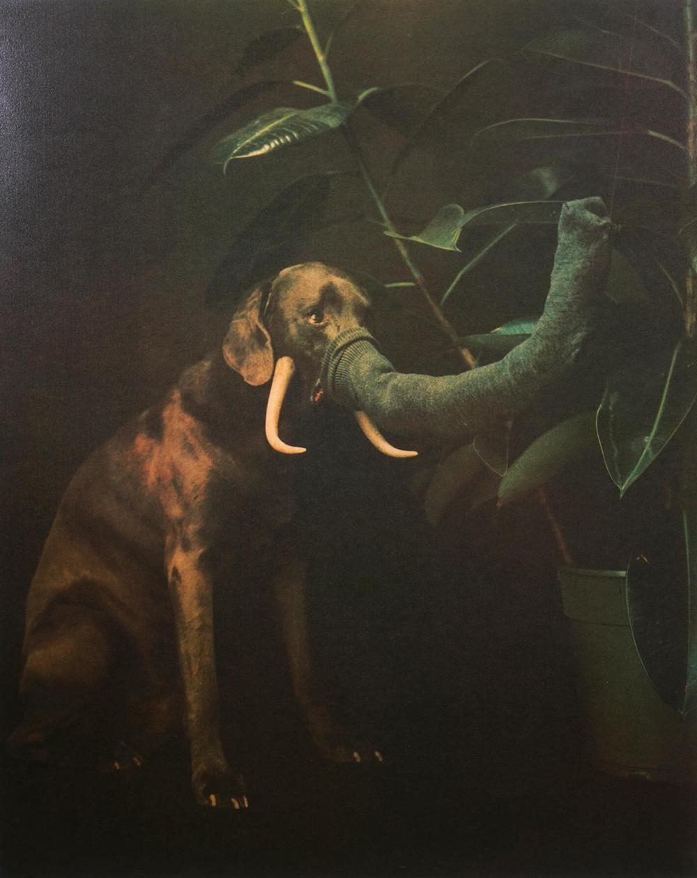 웨그먼(William Wegman)의 사진이다. 이것은 앞의 마그리트 그림(이것은 파이프가 아니다)과 반대되는 사진처럼 보인다. “이것은 코끼리가 아니다”라고 했다면 이 사진은 그저 그랬을 것이다. 그러나 웨그먼은 개의 신체에 약간의 변형을 가해 놓곤, 밑에다 ‘코끼리’라고 써 놓았다. 우리는 그게 코끼리가 아니라고 생각한다. 양말을 쓴 개일 뿐이다. 그러나 「코끼리」라는 제목은 사태를 완전히 다르게 바꾸어 버린다. 마치 변기를 전시해 놓고 「샘」이라는 제목을 붙였던 뒤샹의 작품에서처럼, 대상과 분리된 기호는 거꾸로 대상에 스며들어가 대상을 다른 것으로 만들어 버린다. 그 결과 ‘코끼리’라는 기호는 대상을 지시하는 기호가 된다. 지시체가 기호와 만날 수 없다면, 대체 이런 일은 어떻게 가능한 것일까?
