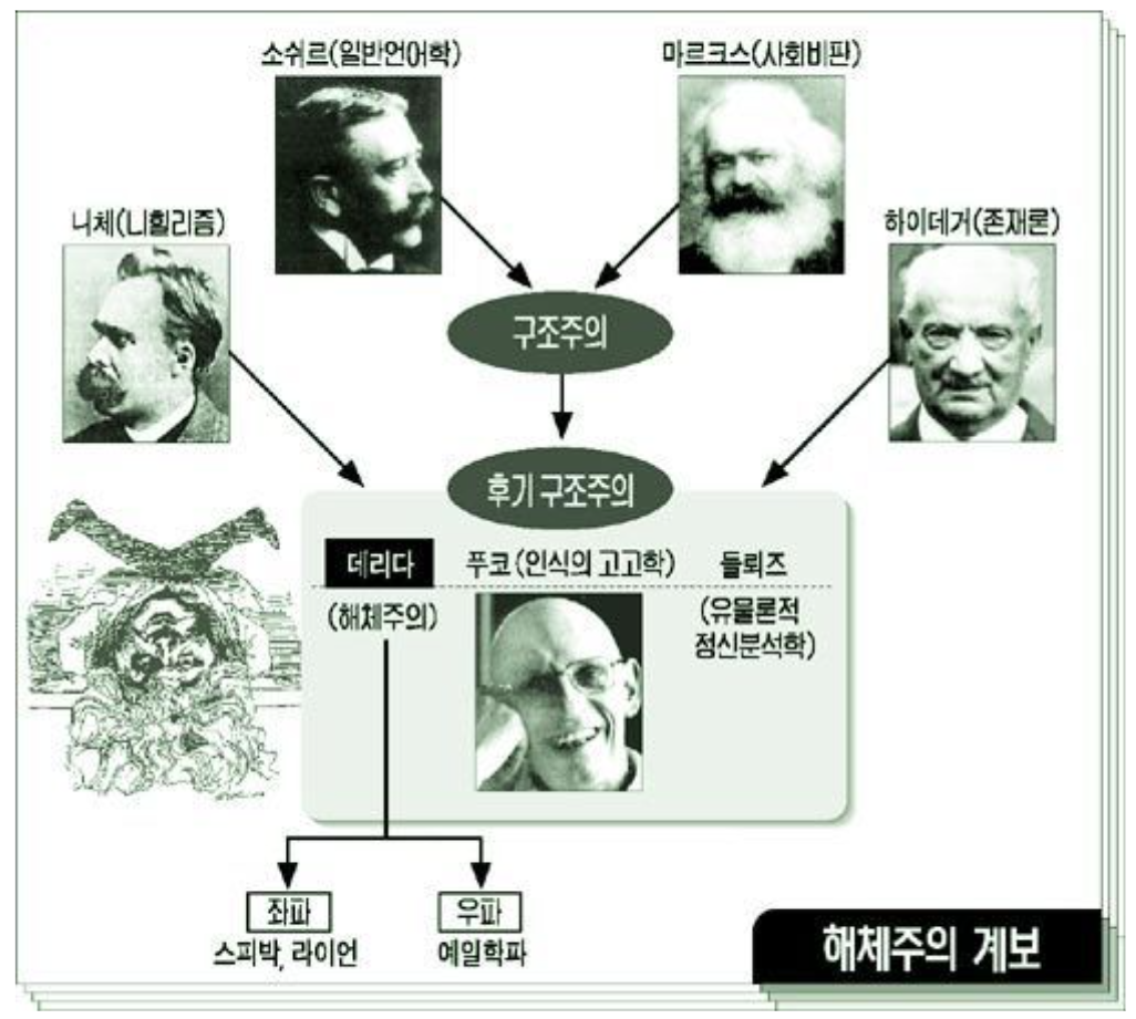 포스트구조주의라는 말은 그것이 대개(‘전부’는 아니란 의미에서) 구조주의의 연속성상에 있음을 뜻하지만, 동시에 그 한계를 해체하고 넘어선다는 점에서 구조주의를 벗어난다고도 할 수 있습니다. 알다시피 ‘포스트’라는 말은 무엇의 ‘후’라는 의미인데, 그것을 벗어난다는 것인지, 그것에 이어져 있는 부분이란 뜻인지 모호합니다. 이 모호함이 차라리 이 흐름이 갖는 이중적인 위치를 잘 보여준다고 생각해서, 저는 그냥 포스트라고 음독해서 쓸 생각입니다.