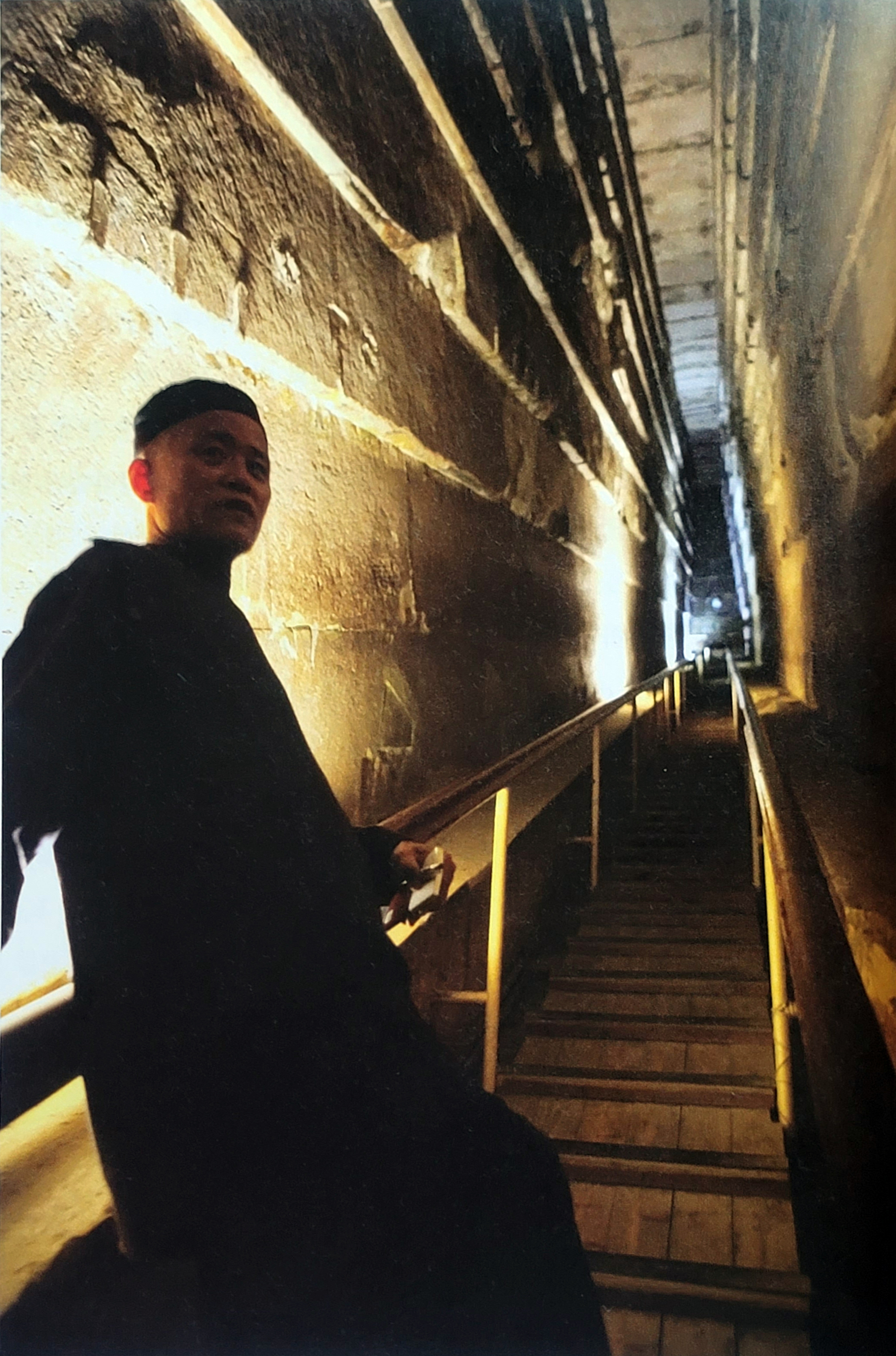 ▲ 빛과 어둠을 우주적 실체로서 이원적으로 대비시키는 것은 페르시아 문명권의 조로아스터교에서 가장 뚜렷하게 나타난다. 이 조로아스터교의 이원적 대결이 이스라엘의 쿰란공동체에서 강렬하게 드러나고 있고, 또 초기기독교 공동체로 계승되었다. 그러나 이집트인들만 해도 삶과 죽음, 빛과 어둠의 세계를 이원적으로 파악하지 않고 연속적인 일체로 생각하였다. 죽음은 또 하나의 삶의 시작이었다. 그래서 무덤을 땅속에 만드는 것이 아니라, 찬란한 태양 아래 지상으로 솟아오르도록 건축하였던 것이다. 내가 서있는 곳은 기자(Giza)의 대피라미드 내의 쿠푸왕(Khufu, BC 2589~2566 재위) 현실로 들어가는 대회랑(Grand Gallery)이다. 이 피라미드 내부에서는 촬영이 금지되어 있기 때문에 특별허가를 일어 어렵게 찍었다. 평균 2,5톤의 돌이 2백 30만 개 쌓여서 된 것이 대피라미드라고 하는데, 이곳 대회랑의 돌은 보통 20~30톤은 충분히 되는 거석들이다. 매우 정밀한 기하학적 계산에 의하여 만들어진 통로인데 적석의 치밀함은 보는 이로 하여금 찬탄을 금할 수 없게 한다. 대회랑의 높이는 8.5m, 길이는 47m.