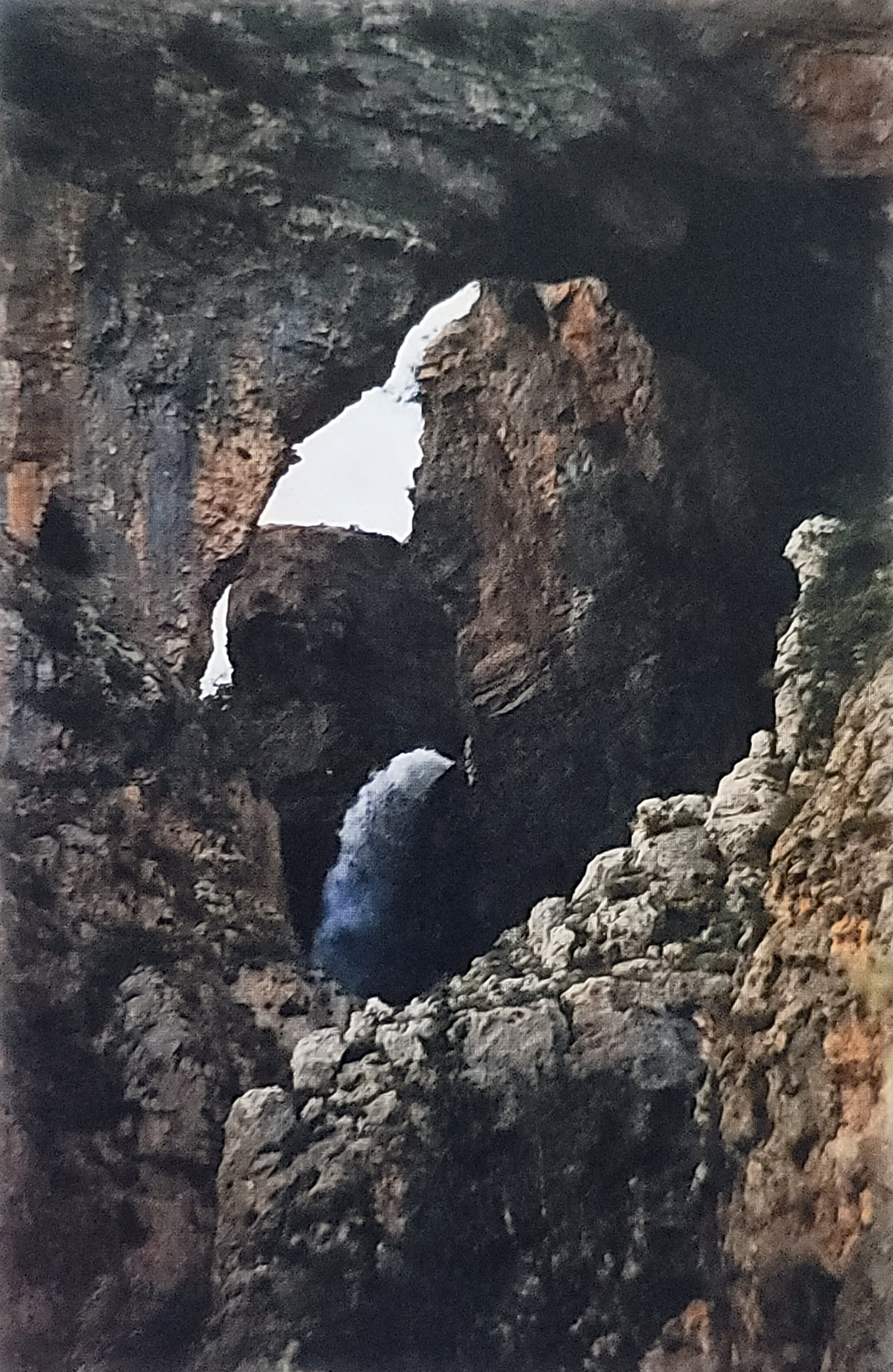 (아래) 카디사 계곡의 산꼭대기에서 폭포가 쏟아지는 광경을 목격할 수 있다. 희한한 자연현상이다. 영험스러운 산하의 생명력이 분출하는 장엄한 광경이다. 망원으로 촬영.