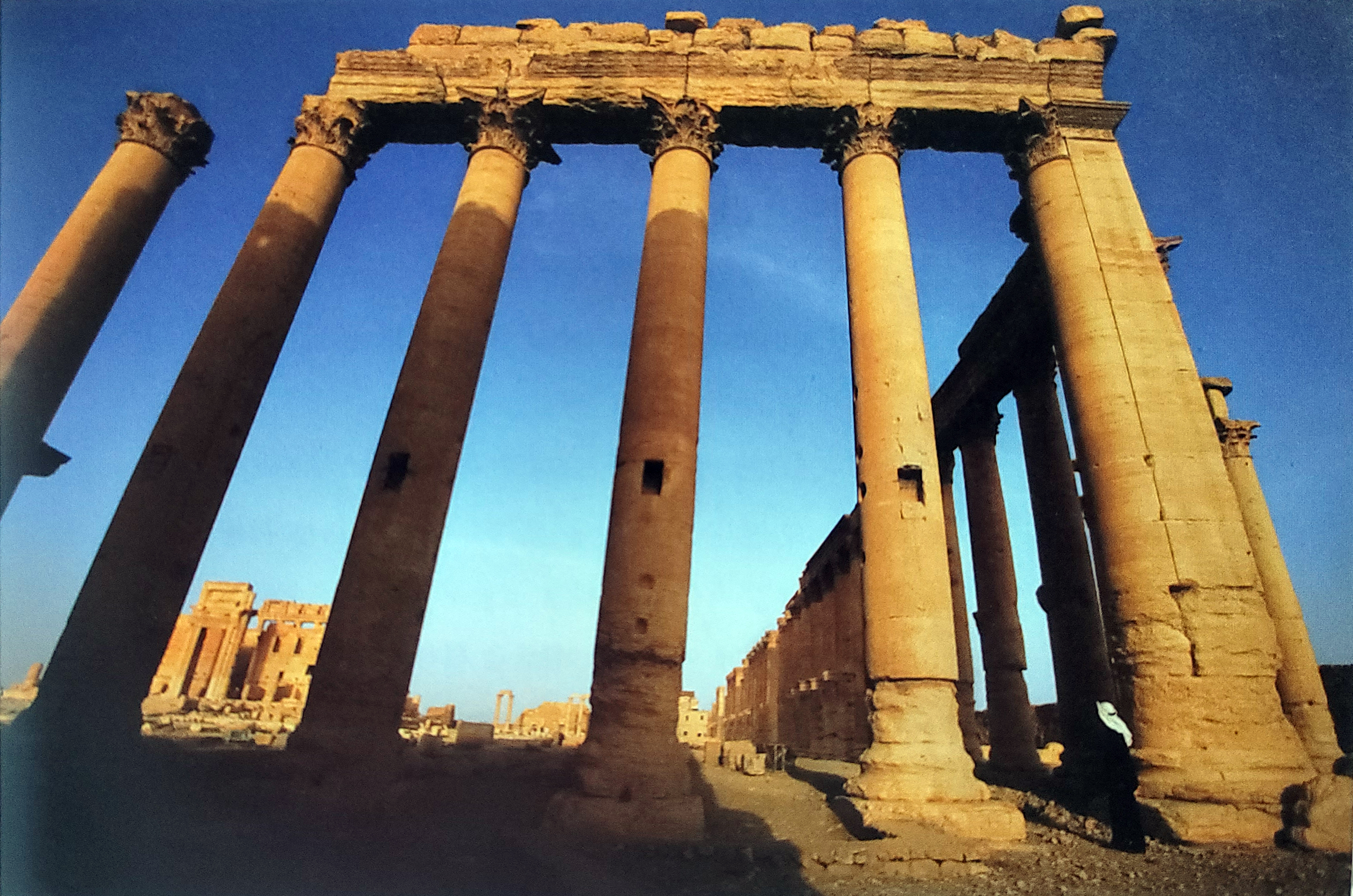 ▲ 팔미라의 바알신전 입구에 남아있는 파괴된 돌조각. 바알신상을 낙타 위에 모시고 끌고 가는데 그 뒤를 팔미라 여인들이 쫓아가고 있다. 신상을 받들고 행진하는 풍습은 이집트인이 창시하고 그리스인이 받아들였다고 헤로도토스는 쓰고 있다. 제일 앞의 여인은 오른손을 낙타 위에 얹고 있다. 여인들의 모습이 사막기후에 적응하는 사람들의 자연스러운 복장을 하고 있다. 아랍문화와 관계없다. 그리고 그 묘사가 후대의 성모마리아상과도 연결되어 있음을 알 수 있다.
