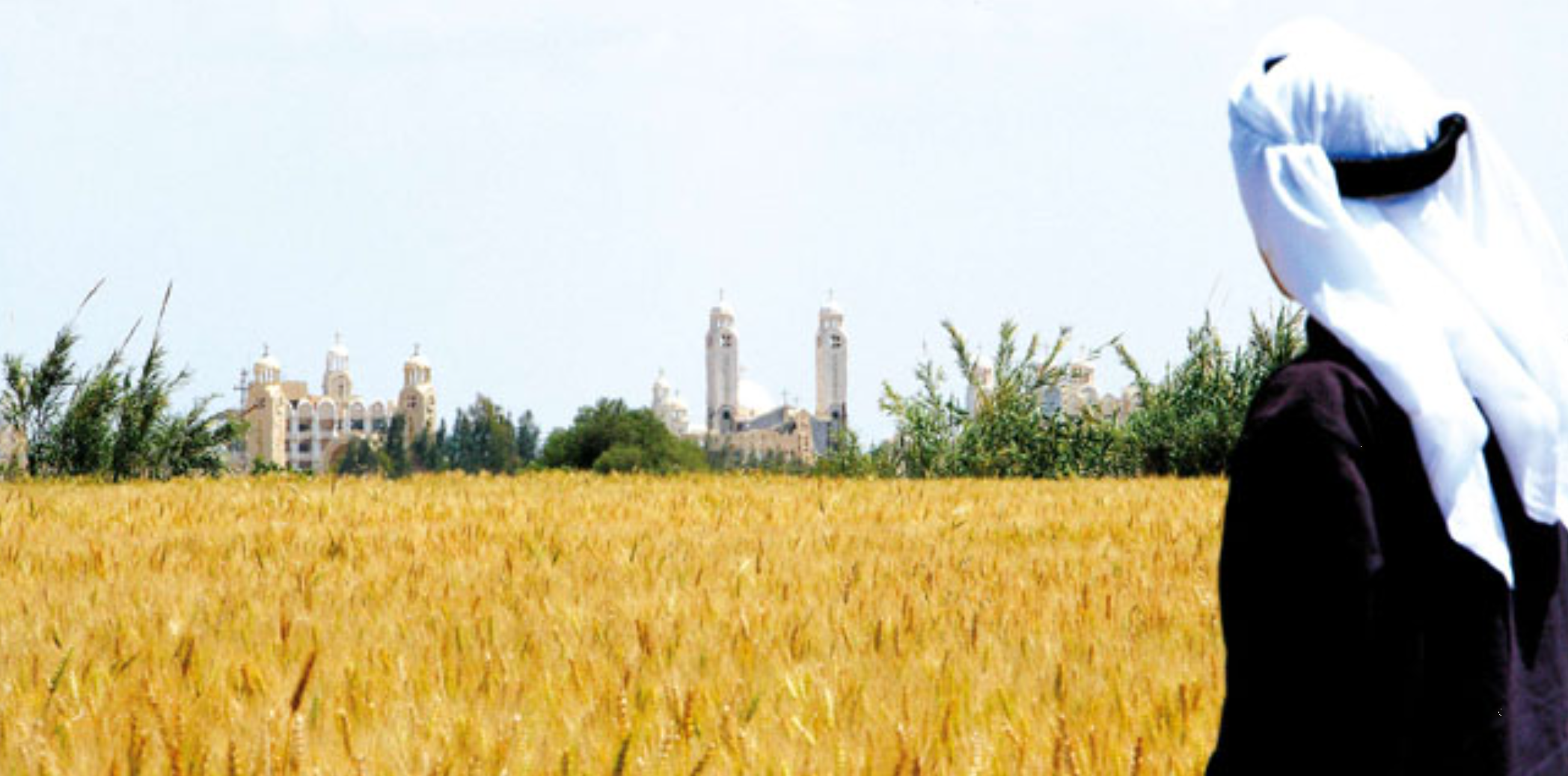 ▲ 아타나시우스와 동시대의 성자인 메나가 순교당한 후 묻힌 자리에 세워진 콥틱교도 최대순례지 아부메나 성지. 한때는 치유능력이 탁월해서 예루살렘 성지보다도 더 많은 기독교도들이 전 세계에서 몰려들었다. 밀밭 위로 아련히 보이는 모습이 아름답다. 알렉산드리아 근교. [사진=임진권 기자]