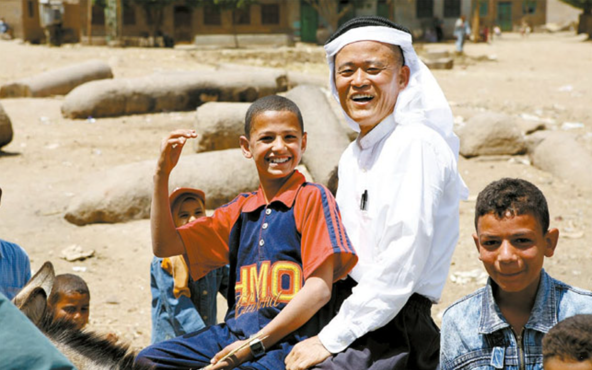 ▲ 파바우 수도원 본부에서 나귀 타고 동네 아이들과 활짝 웃고 있는 도올. 이곳 도서관에 도마복음서가 소장되어 있었다.