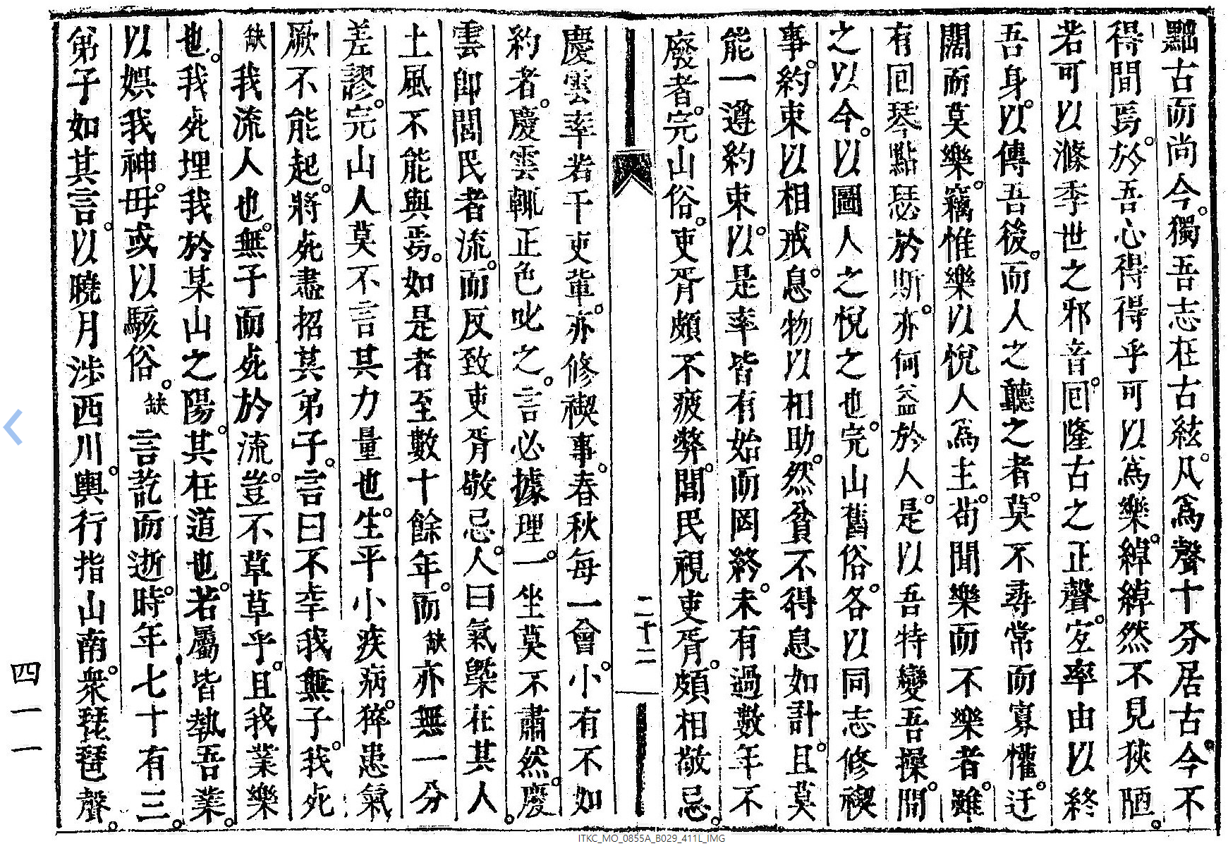 噫! 善哉慶雲之心乎! 其能知人有望於, (缺) 遂於人也; 其能知悅人爲大, 小勞不暇念也; 其能知我小技能以悅多人, 爲可幸也; 其能知挾小技以驕人, 爲不可也; 其能知業其樂以有及乎人也, 其能知不可以自私也; 其能知不可以訑訑也, 其能知如是而後, 可以不害於我之天也.