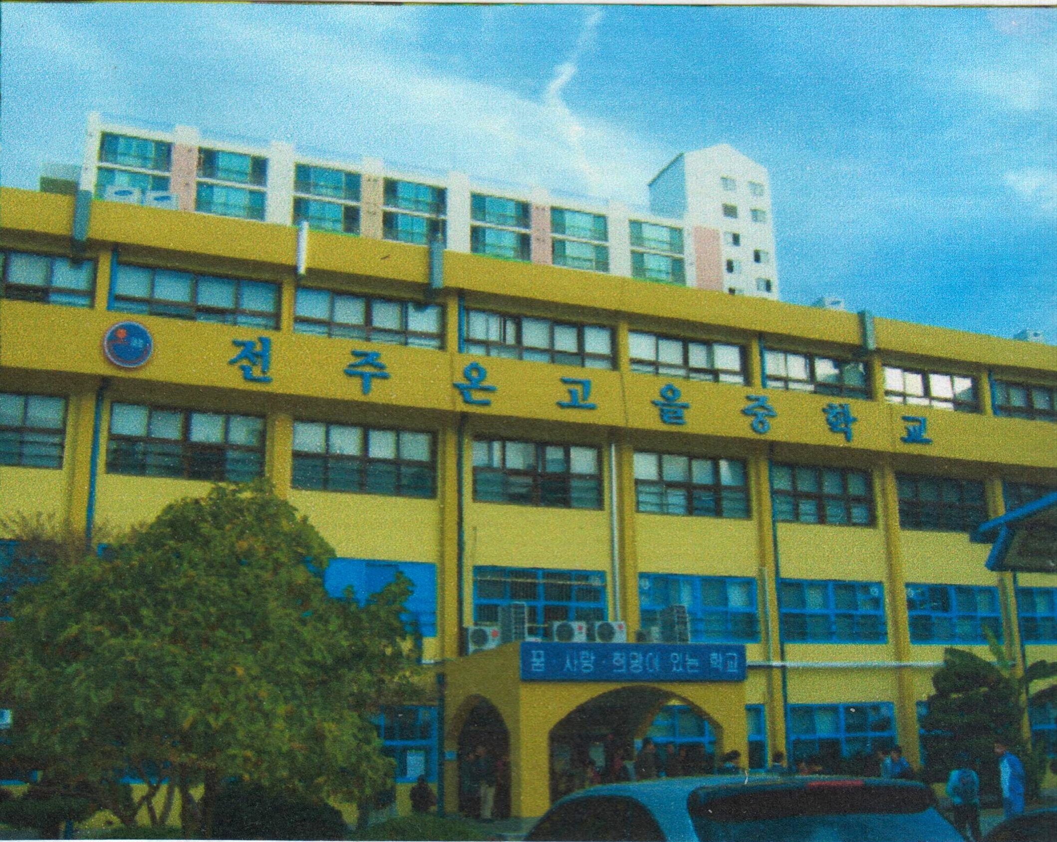 온고을중학교는 8년 전과 비교해보니 학교에 페인트를 새롭게 칠해서 그땐 노랑이 학교였다면 지금은 파랭이 학교가 되었다. 뭔가 색깔 자체가 매우 유아틱한 느낌이 있다. 마치 ‘꿈동산에 오신 여러분 맘껏 기량발휘하세요’라고 온 맘과 성심을 다해 응원해주는 것 같았다. 반갑다, 온고을중학교야. 8년 동안 잘 있었니~