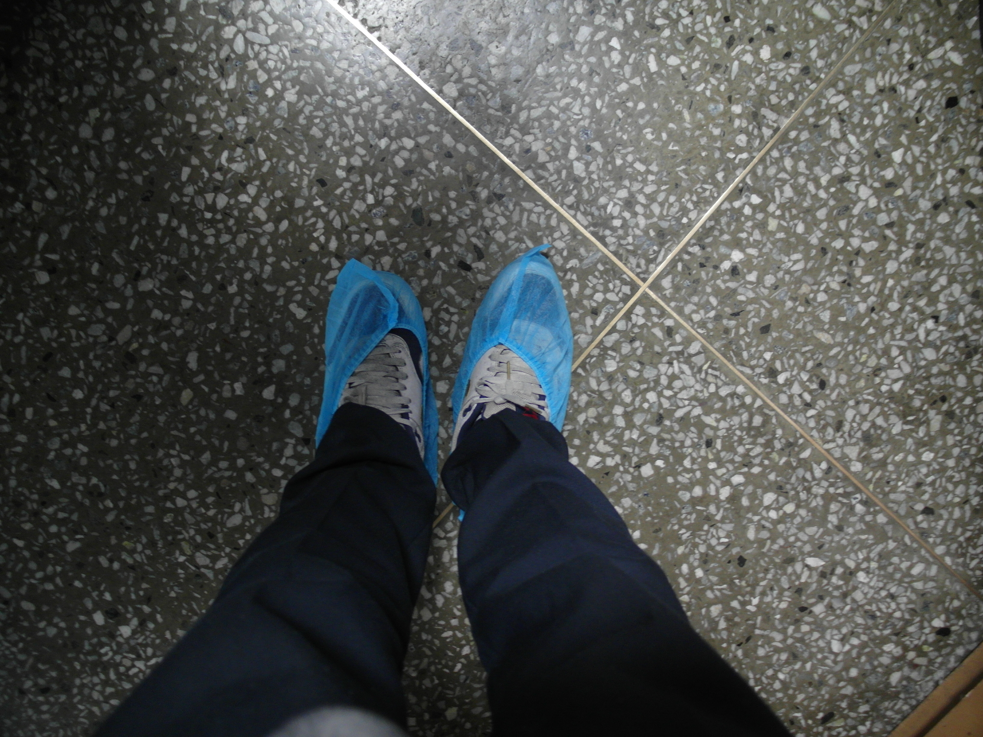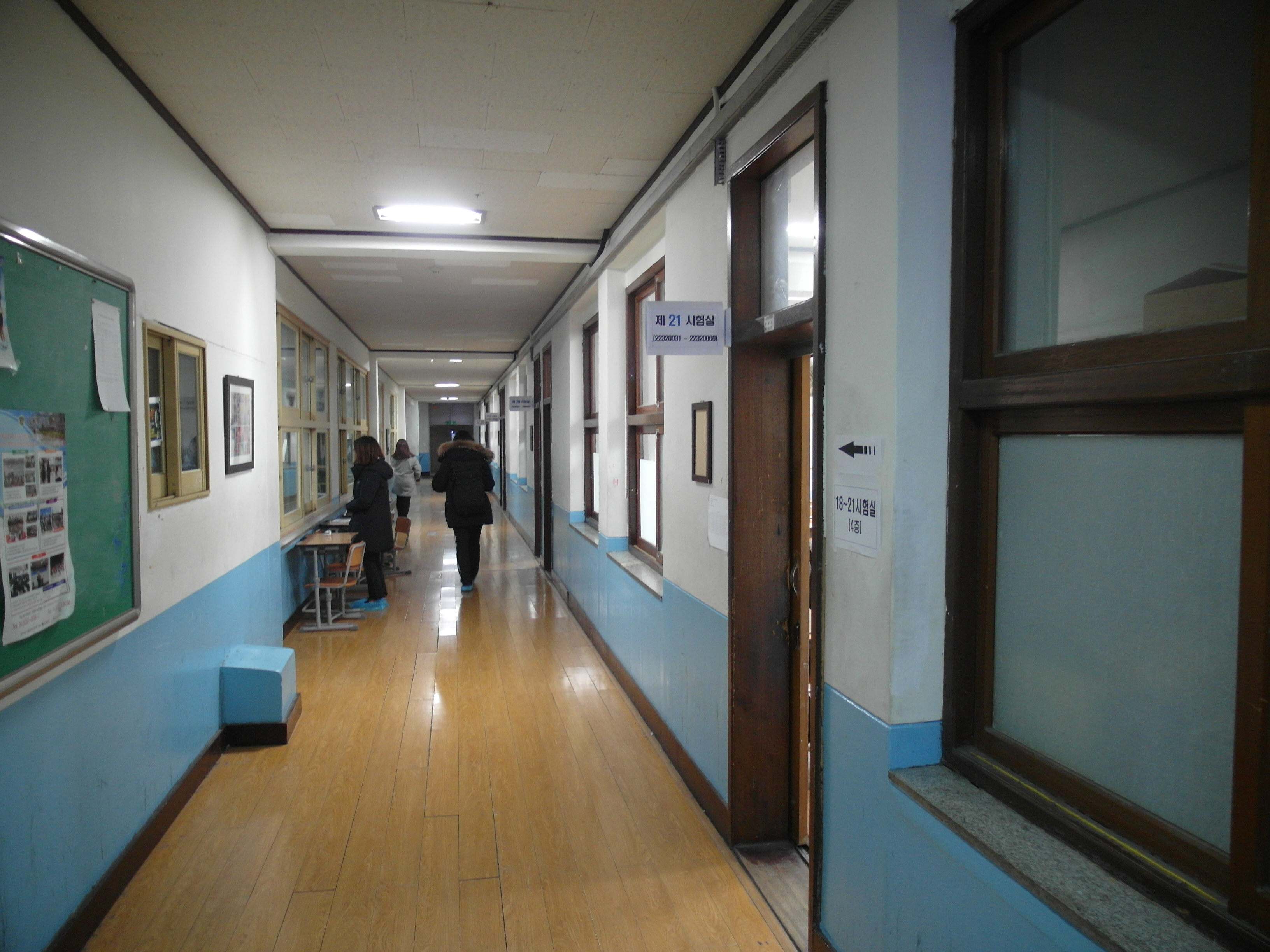 중앙현관에 들어서니 덧신이 있더라. 예전에 임용을 볼 땐 덧신 같은 건 없었다. 그래서 신발을 그대로 신고 들어가서 임용을 봤었는데 지금은 학교의 위생을 위해 좀 더 짜임새가 갖춰진 느낌이다. 더욱이 오늘처럼 비가 오는 날엔 신발에 진흙이 묻었을 테니, 덧신을 신게 하는 건 더욱 환영할 만한 일이었다. 내 신발 곁에 덧신을 두르니, 뭔가 촌스러우면서 색다른 분위기가 물씬 풍겼다.