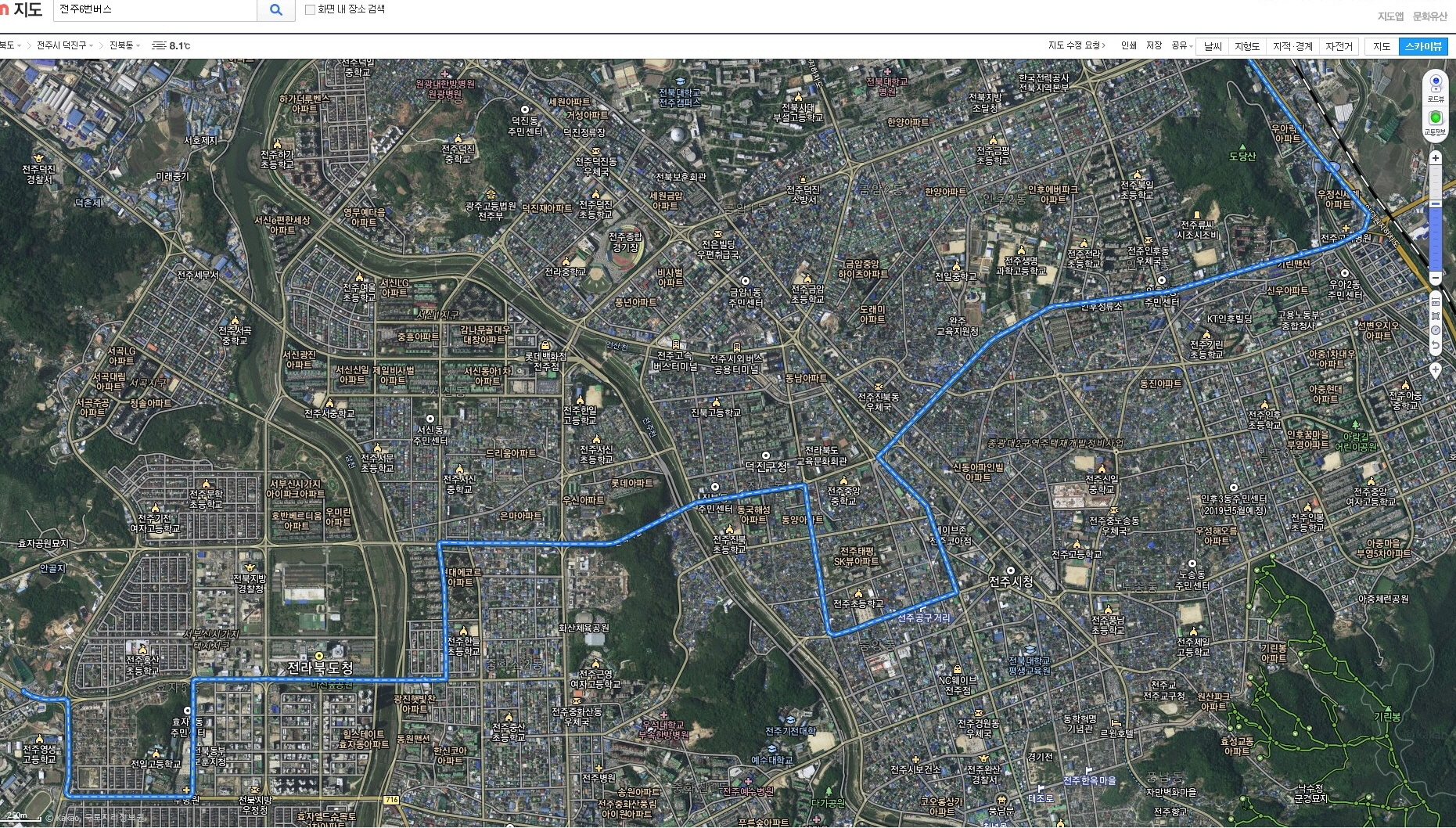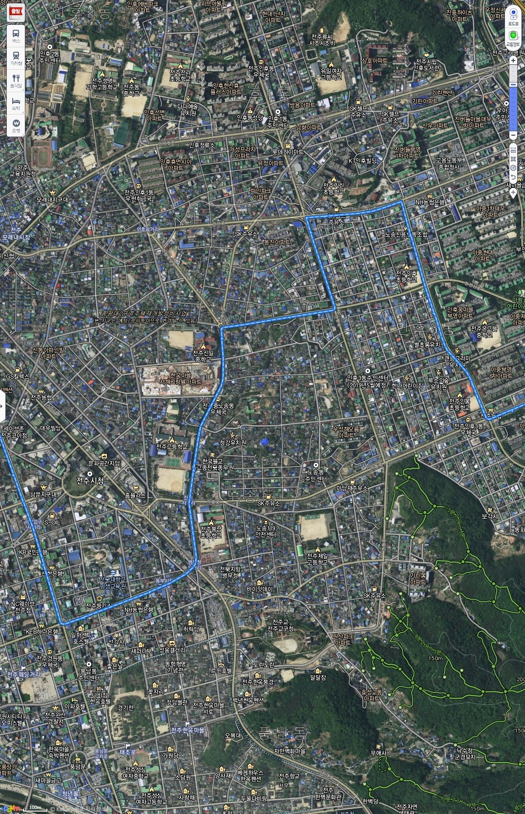 ▲ 6번 버스와 102번 버스는 전주시청 앞 사거리에서 마주치고, 안골에서 다시 마주친다.