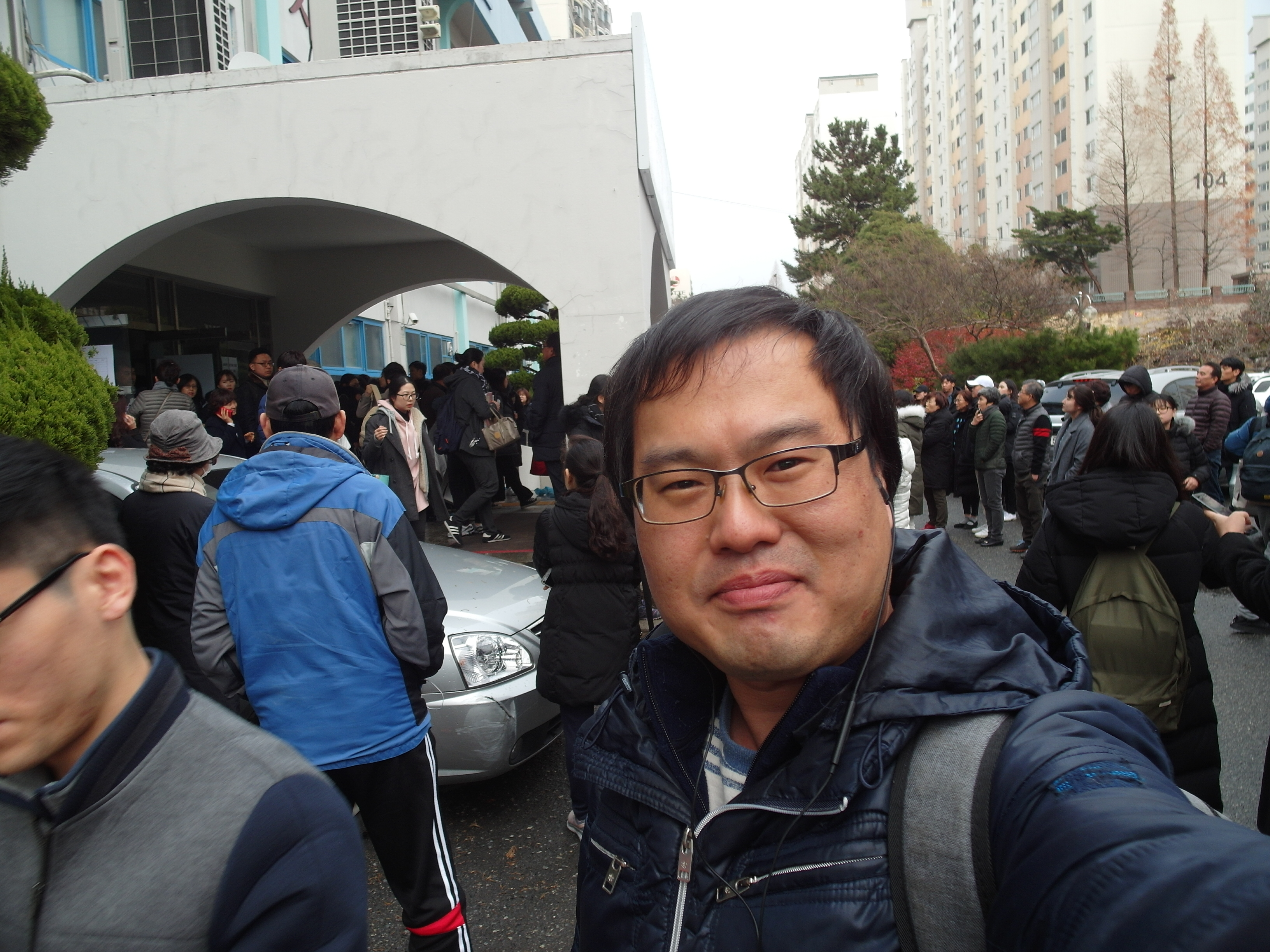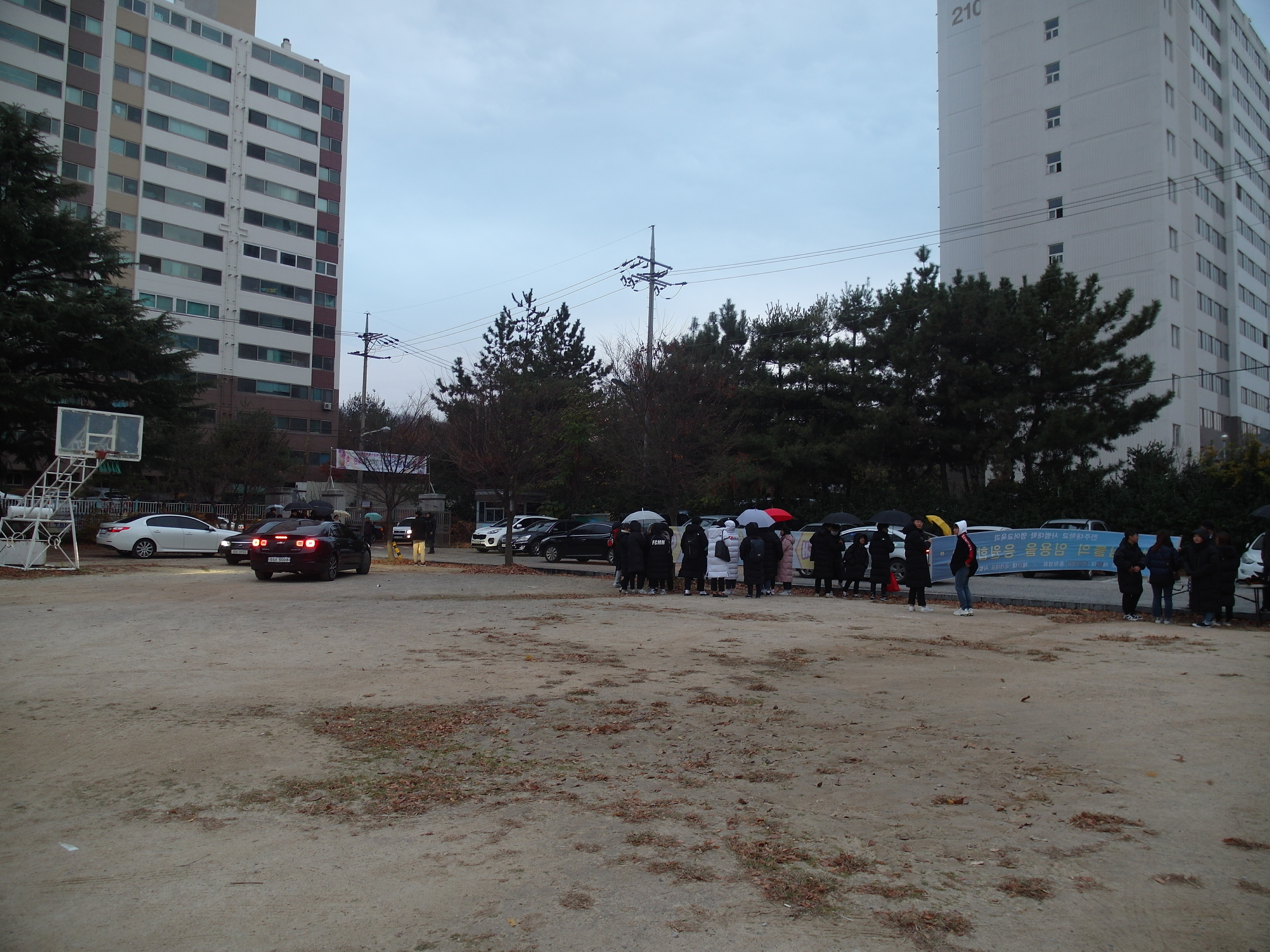 102번 버스와의 우여곡절 끝에 학교 정문에 도착한 시간은 7시 35분이었는데 이미 학교 앞은 한바탕 난리더라. 각과 후배들이 모두 나와 응원의 채비를 갖추었고, 시험을 보기 위해 부모의 차를 타고 온 수험생들이 장사진을 이루었다. 거기에 비까지 내리는 축축한 날씨다 보니 더 번잡스럽게 느껴졌다.