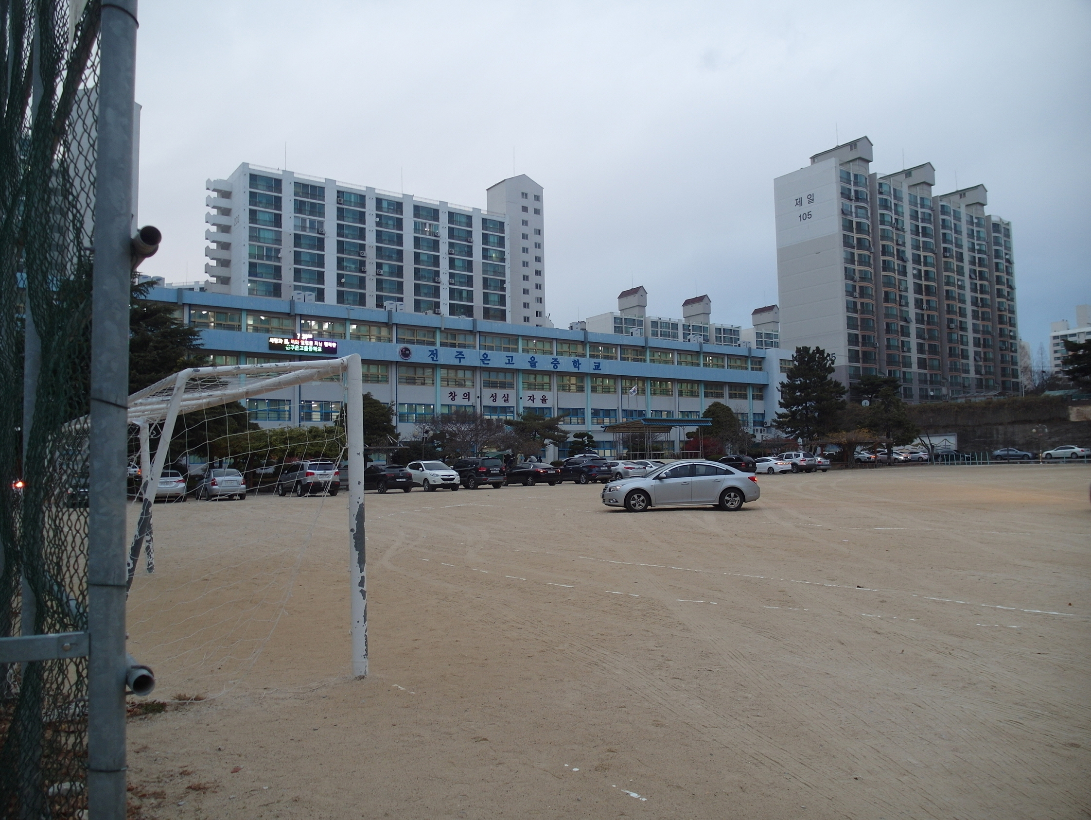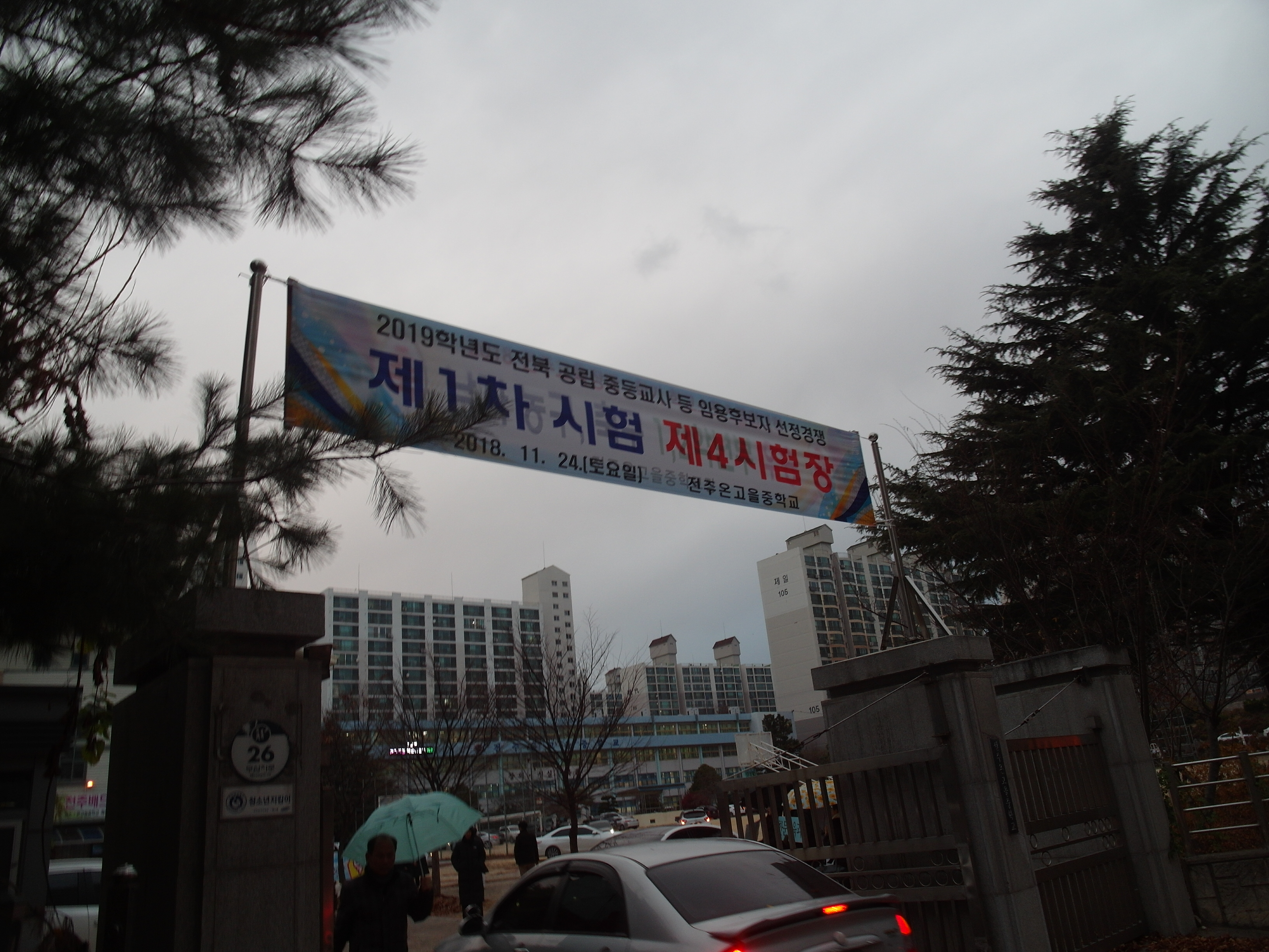 거기서 15분 정도를 걸으니 드디어 익숙한 곳이 나온다. 온고을중학교다. 나의 2010년 마지막 임용을 봤던 장소이자, 새롭게 시작하는 첫 임용을 볼 장소로 뫼비우스의 띠 같은 장소라 할 수 있다. 임용고시날에 학교는 7시 30분부터 8시 30분까지 입실이 가능하며 그 이후엔 당연히 입실은 통제되며 교문까지 폐쇄하고 심지어, 운동장에 주차한 모든 부모들까지 학교 밖으로 나가서 대기해야 한다고 하더라. 예전에도 이렇게까지 철저하게 했는지는 기억나지 않지만, 지금은 더욱 삼엄해진 것 같은 느낌은 든다.