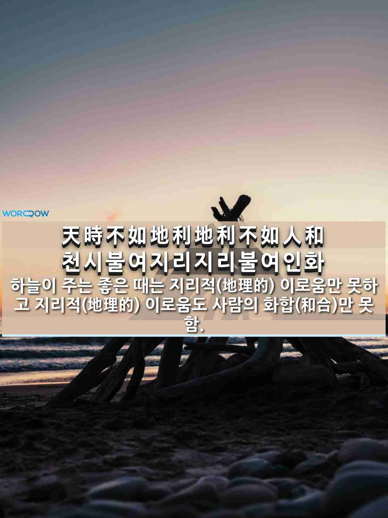 1. 하늘의 때는 지리적인 이점만, 지리적인 이점은 사람들의 화합만 못하다