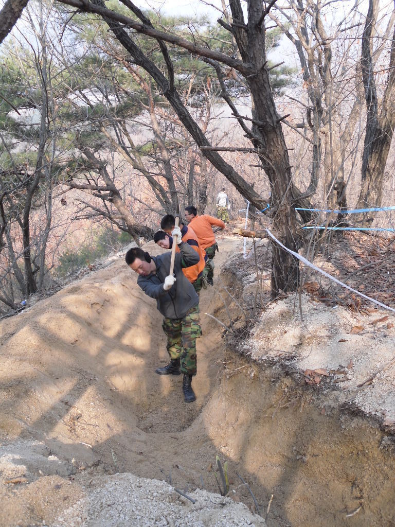 예전에 ‘철원의 모든 산이 진지화되어 있구나’하고 생각했는데, 진지 공사 기간에 ‘모든 산이 진지화 되어 있다면 그 모든 산엔 군인들의 피와 땀이 고스란히 베여 있다’라고 생각을 바꾸게 되었다. 끝나는 그 순간까지 너무 짜증 나지만 그만큼 수고하자! 오늘은 오살나게 추웠다. 비극이 온몸으로 느껴질 정도로 말이다.