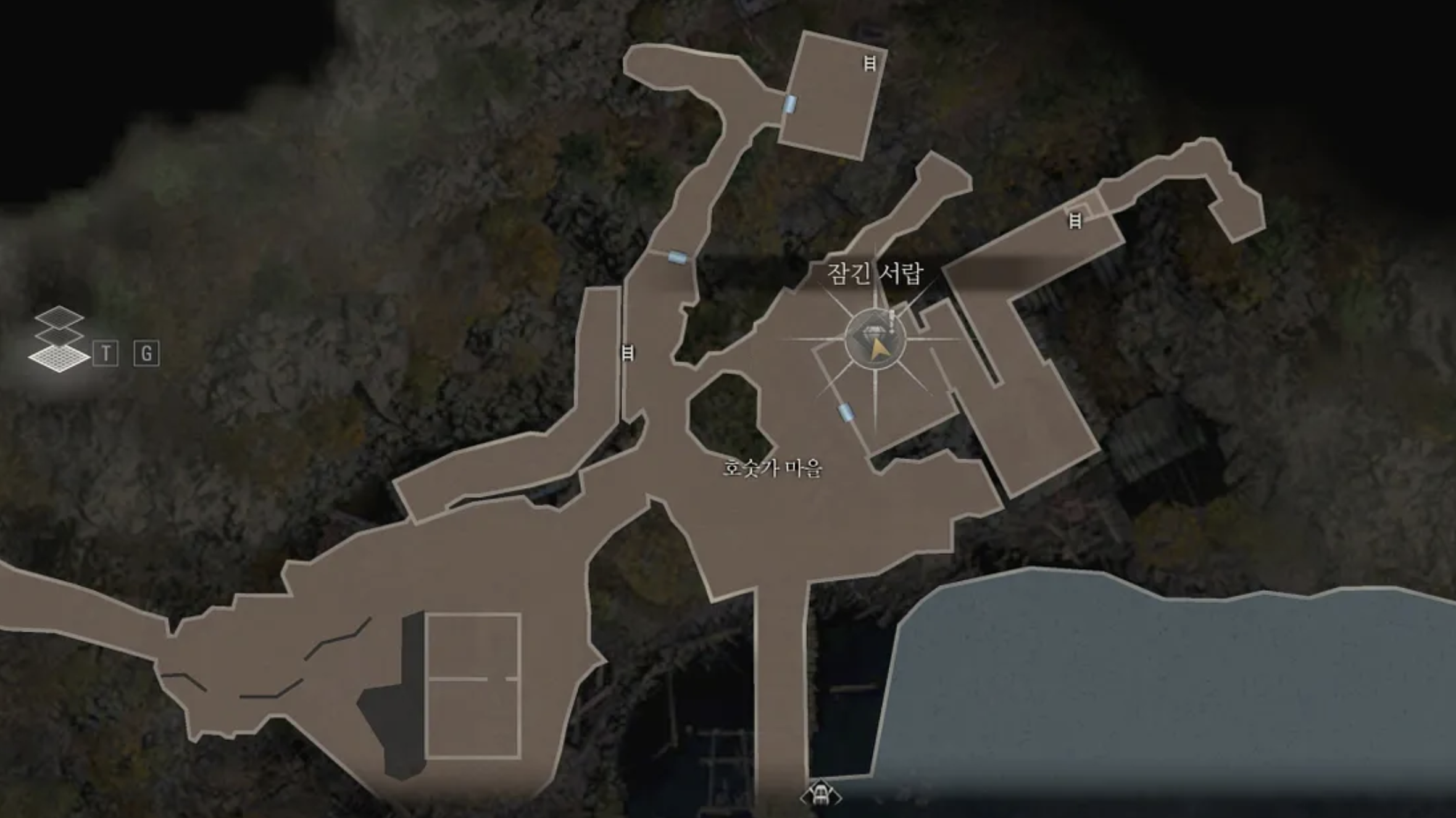 | 1 | 호숫가 마을 | 부서진 배 옆집 창틀을 넘어서 있음. 부서진 집 천장을 잘 살펴볼 것. |