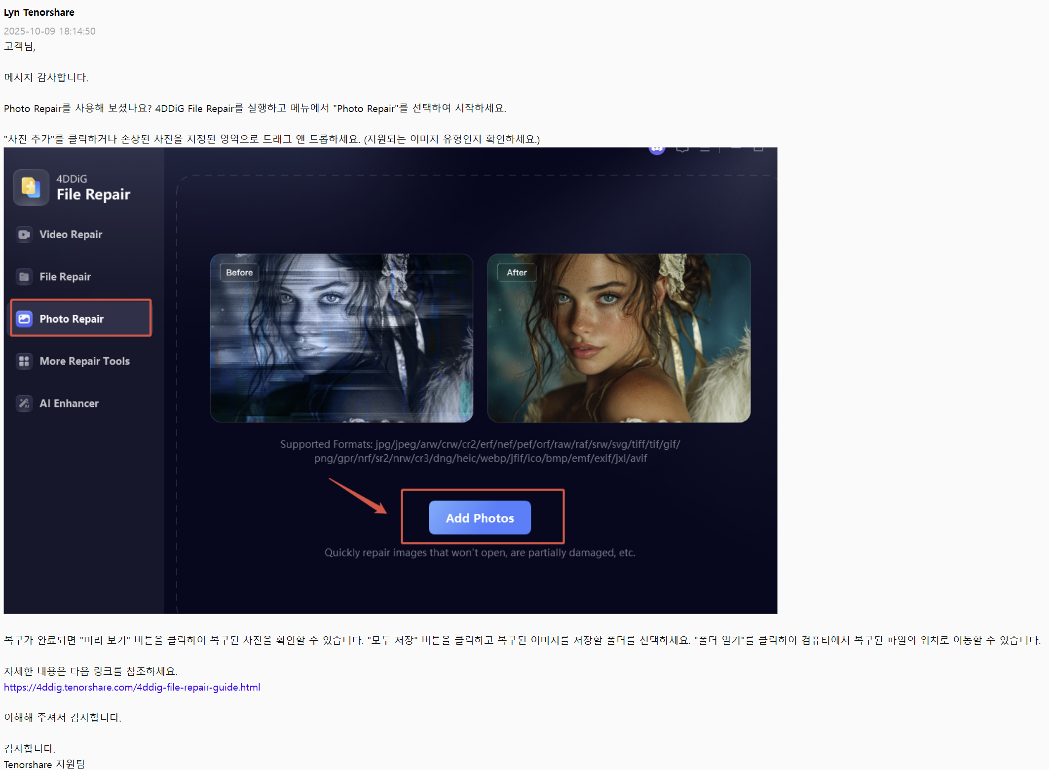 Tenorshare 4DDIG File Repair를 2주만에 환불받다