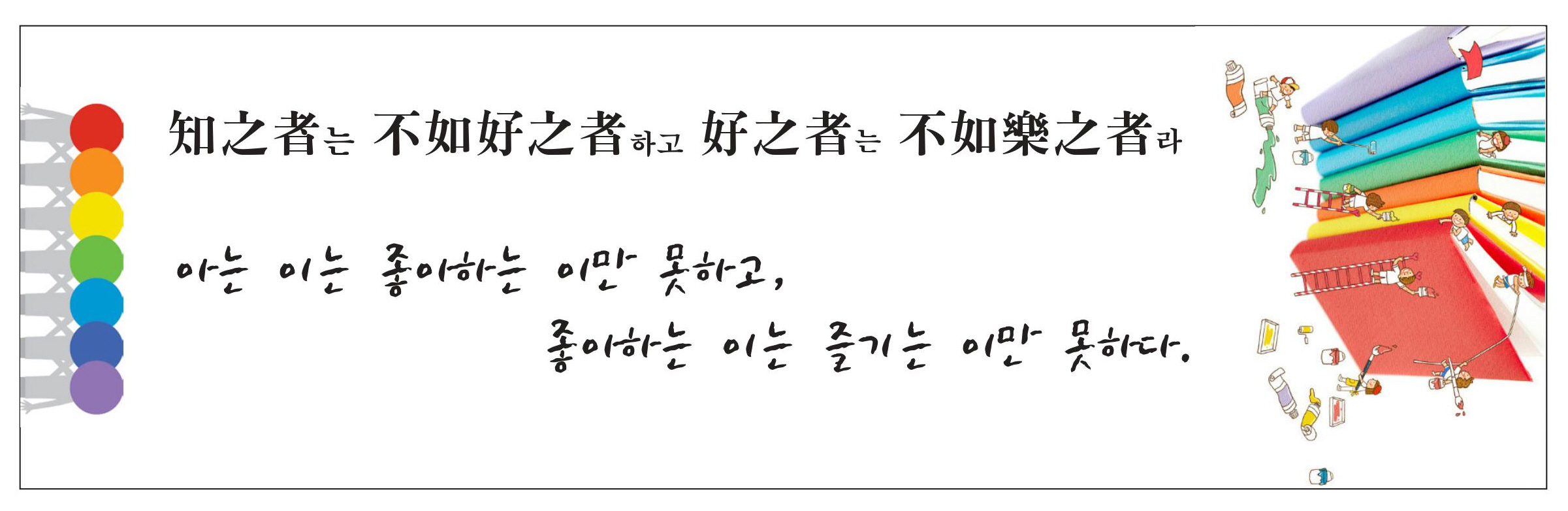 공자께서 “그것을 아는 사람은 그것을 좋아하는 사람만 못하고, 그것을 좋아하는 사람은 그것을 즐기는 사람만 못하다.”라고 말씀하셨다.