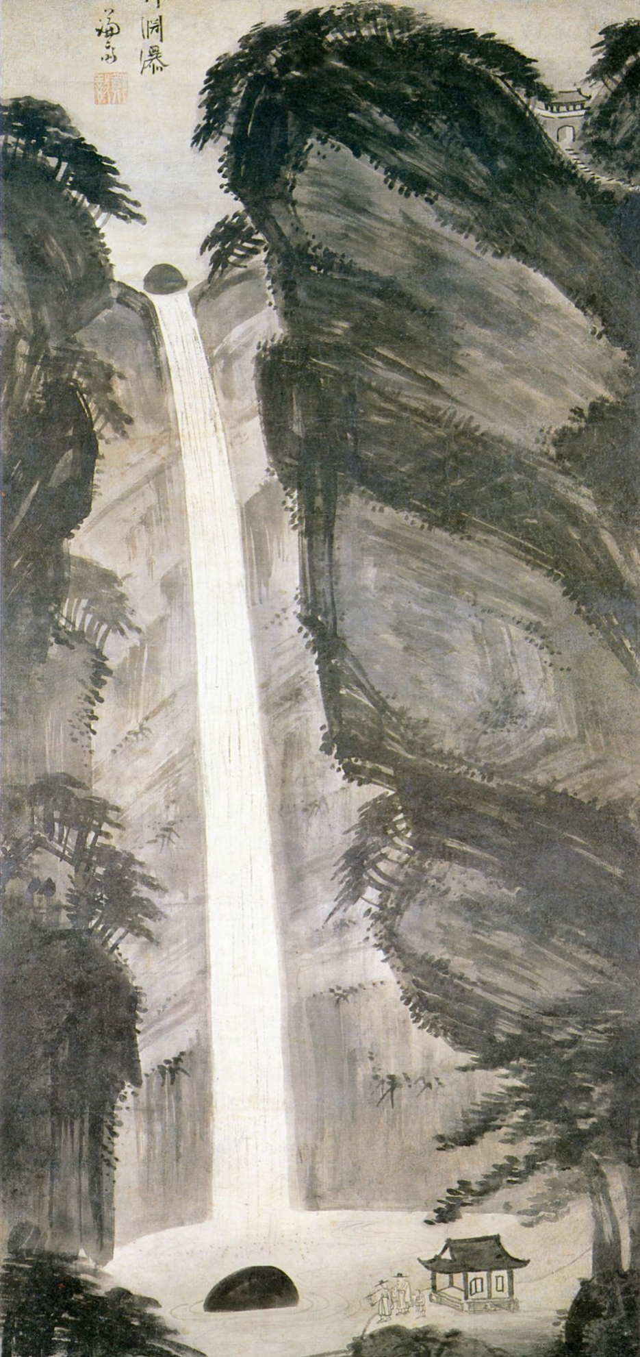 龍湫百仞水叢叢 룡추백인수총총 | 폭포 밑 웅덩이【용추(龍湫): 폭포가 떨어지는 바로 밑에 있는 웅덩이.】에 백 인의 물이 모여 있네. |