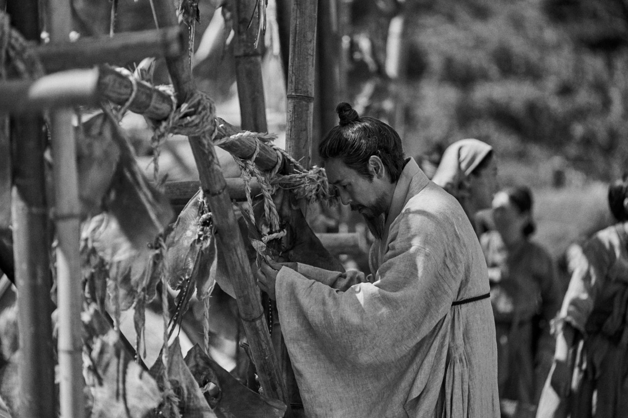 울타리에 도롱이와 옷을 걸어두고 처마에 그물을 말리니 |