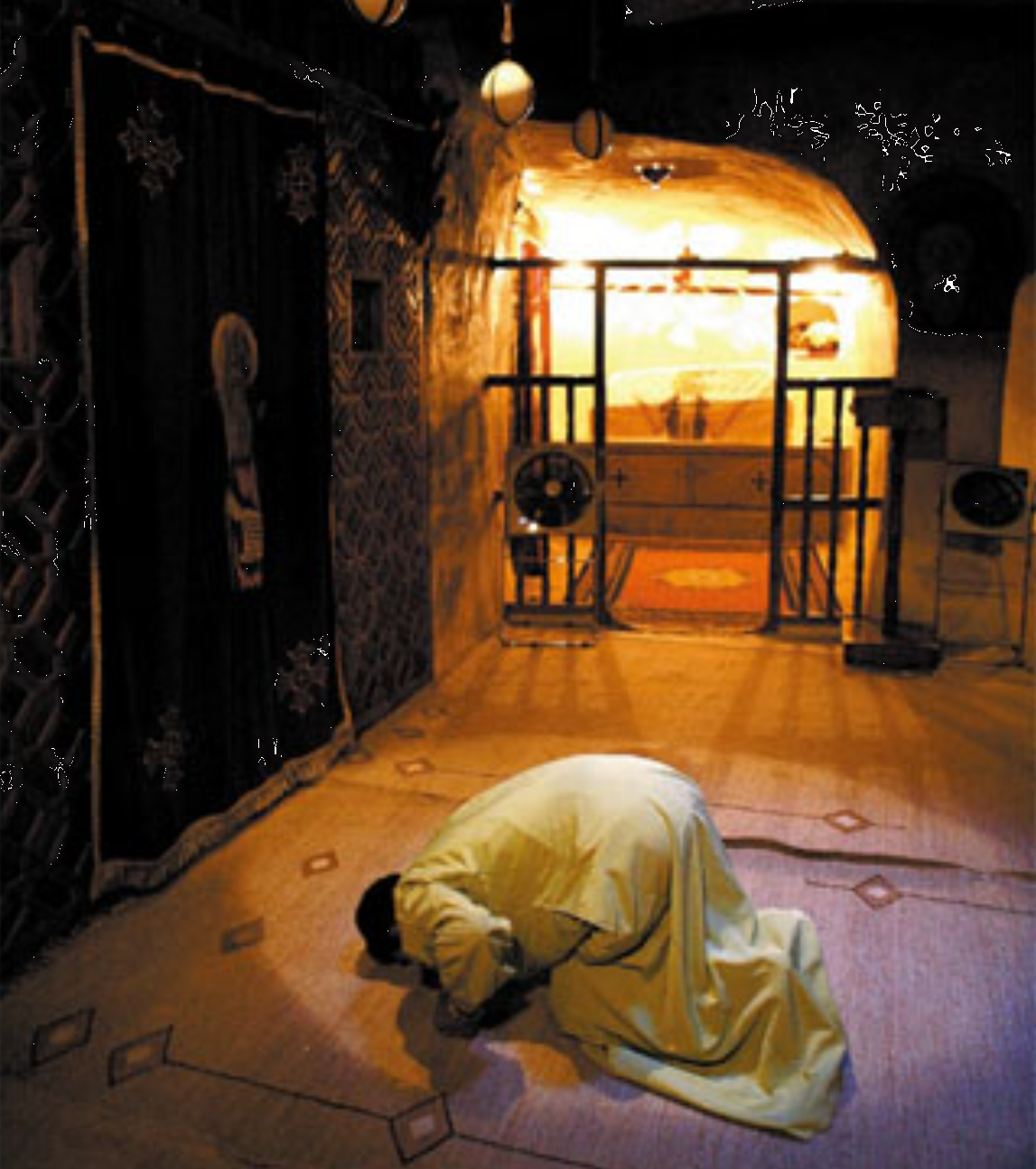 ▲ 이곳이 바로 폴이 죽은 그 동굴이다. 폴이 바로 이 콥틱 크리스찬의 모습으로 세상을 떴을 것이다. 정면 밝은 곳에 폴의 석관이 있다. 천장에 달린 타조 알은 죽은 것 같지만 부화되기 때문에 예수의 부활을 상징한다고 한다. 천장에 그냥 구멍을 뚫어 채광하는데 1년 강우량이 5m 이하이기 때문에 아무런 지장이 없다고 했다. 청량하기 그지없었다.