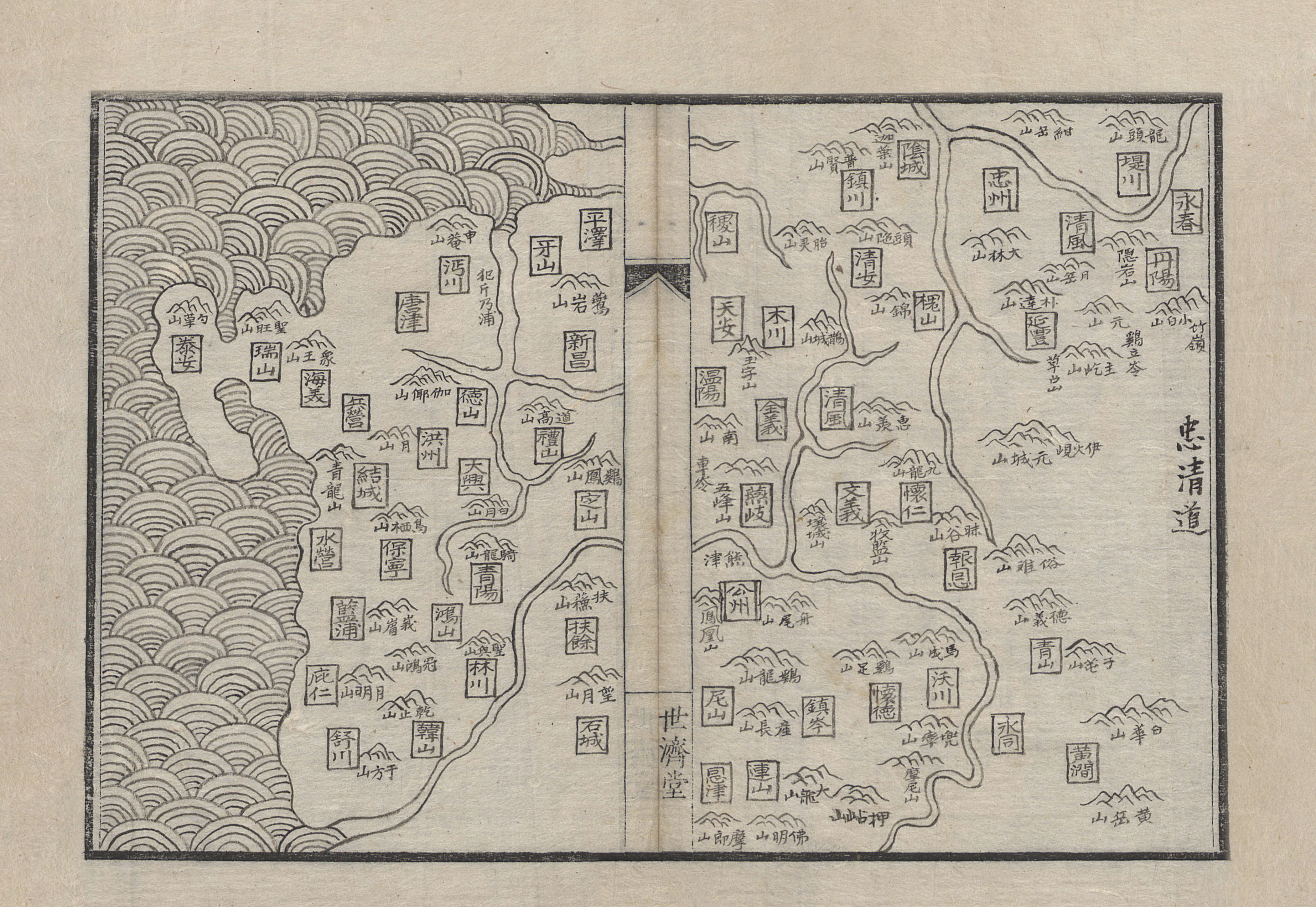 卷首總圖, 則錄祀典所載嶽瀆洎名山大川, 八道各圖, 則只錄州縣之鎭山, 其四至四到, 並附著于圖面.