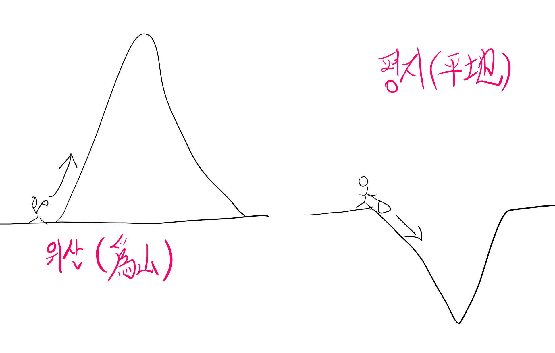 공자께서 “비유컨대 산을 만들 때 한 삼태기를 더하지 않아 그치는 것도 내가 그치는 것이고, 비유컨대 평지를 만들 때 비록 푹 파진 구덩이에 한 삼태기를 쏟아 부어 나가는 것도 내가 가는 것이다.”라고 말씀하셨다.