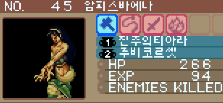 | 45 | 암피스바에나 | 진주의 티아라 | 루비 코르셋 | ||