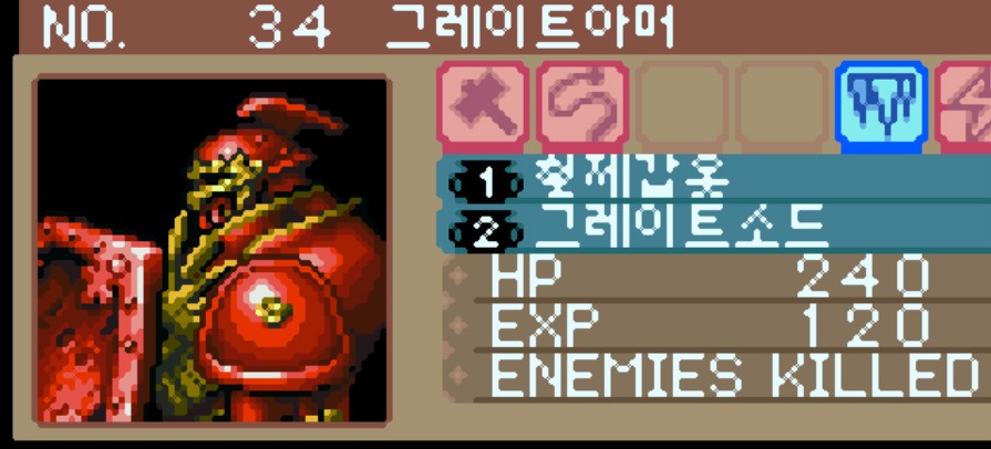 | 34 | 그레이트 아머 | 철제갑옷 | 그레이트소드 | ||