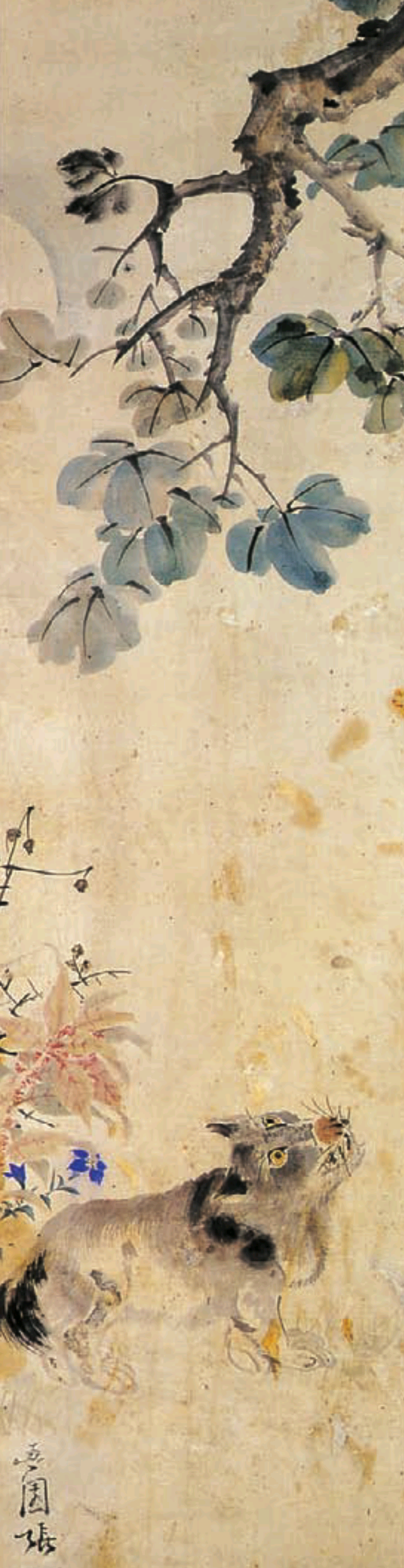 ▲ 장승업(張承業), 「오동폐월도(梧桐吠月圖)」, 19세기, 123.4X31cm, 선문대박물관.