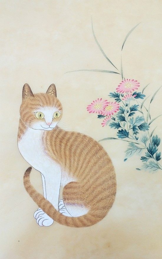 흔히 모란에 나비를 그릴 양이면 으레 고양이도 함께 등장하는데 고양이는 또한 70 늙은이를 의미한다. ‘묘(猫)’자의 발음이 70 늙은이 ‘모(耄)’자와 발음이 ‘마오’로 같기 때문이다. 널리 알려진 변상벽의 고양이 그림을 보면 고목(古木) 등걸 아래 고양이가 새끼 세 마리와 함께 앉아 있고 까치와 참새가 나뭇가지에 앉아 있는 구도로 되어 있는데, 이는 자식을 셋 둔 70세를 맞은 노인의 고희(古稀)를 축하하기 위한 축화(祝畵)이다. 고목(古木)은 수명장수를, 까치와 참새는 ‘작(鵲)’과 ‘작(雀)’으로 음이 같아 기쁨을 상징하며, 고양이가 70 늙은이를 지칭하게 되는 까닭이다.