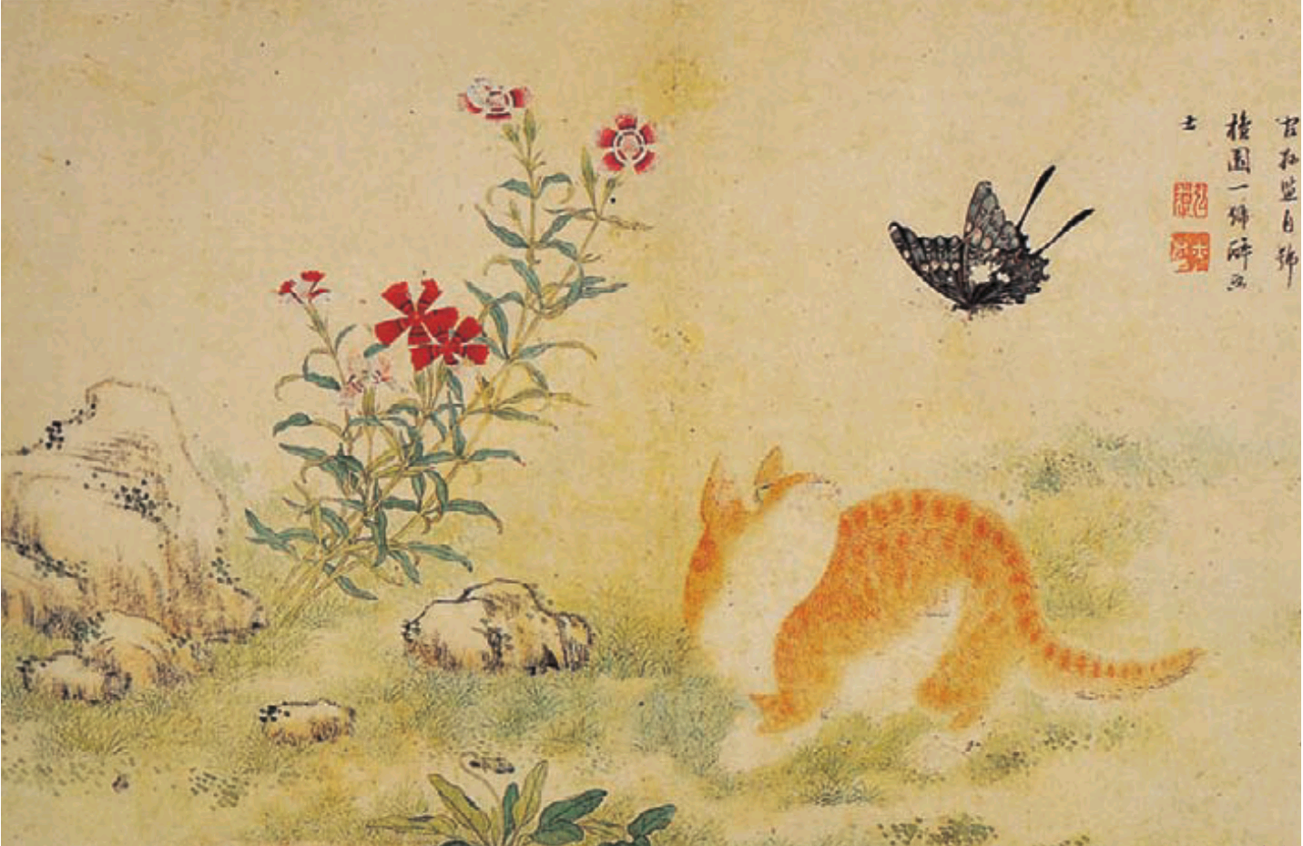 ▲ 김홍도, 「황묘농접(黃猫弄蝶)」, 18세기, 46.1X30.1cm, 간송미술관