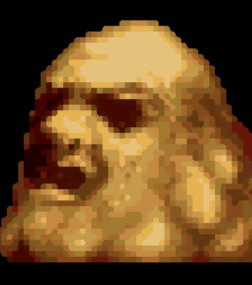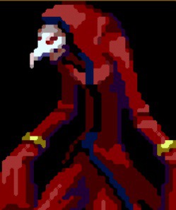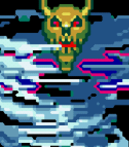 저주의 시계탑(呪縛の時計塔)의 세이브 포인트 바로 다음 칸의 배경을 보면 무언가 검은 게 왔다갔다 하는 걸 볼 수 있다.