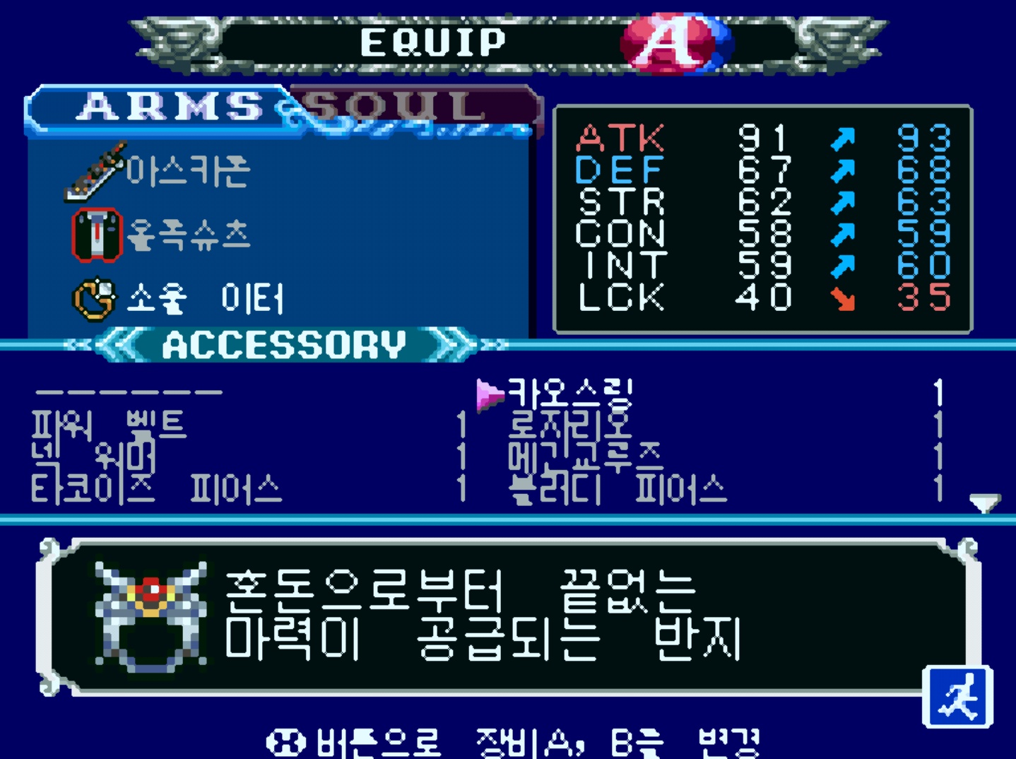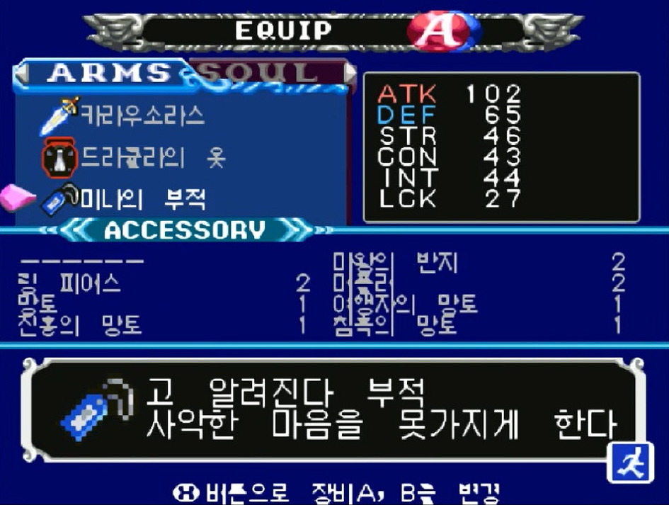 | 1 | 소울 이터(ソウルイーター) | 소울의 등장확률을 높임. | 해머의 상점에서 300.000에 구입 가능. |