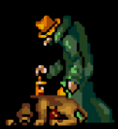 게임이 시작하는 곳인 지도에서 사라진 마을(地図から消えた村)의 입구의 배경을 보면 검은 그림자가 움직이는 걸 발견할 수 있다. 바로 이 녀석이 설인, 혹은 오랑우탄인 예티다.