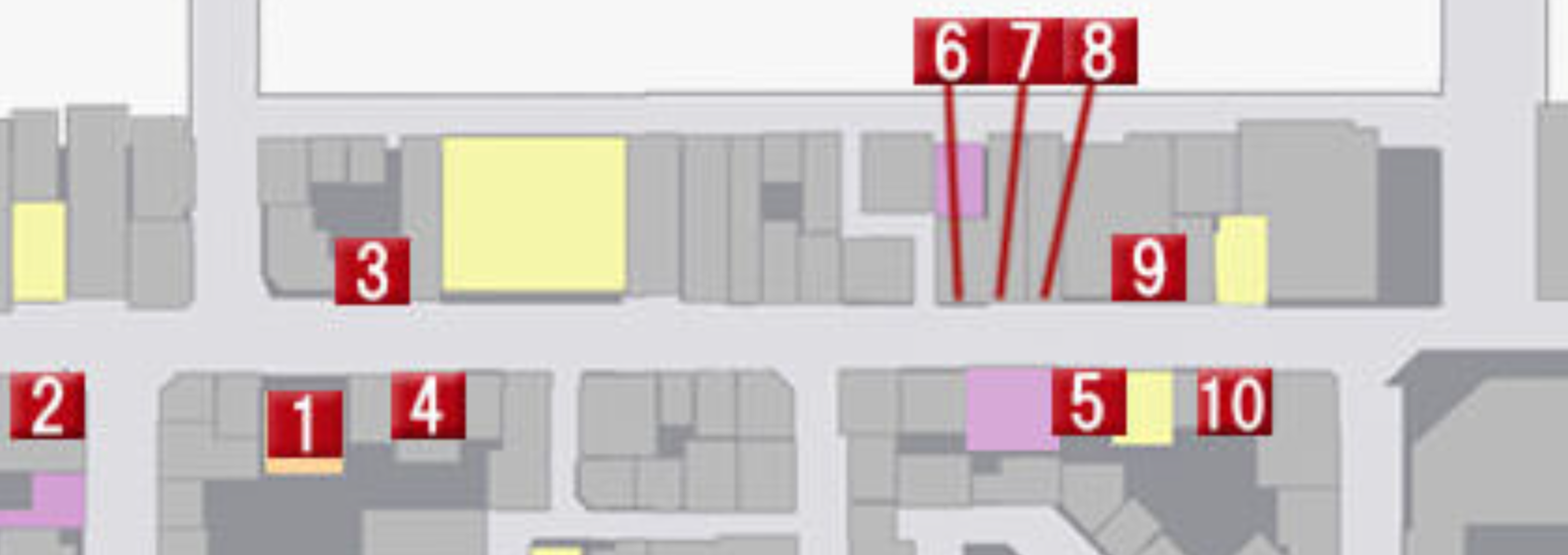| ⑦ 레스토랑 미카도 | 250만 | ⑧ 니시호리 쌀집 | 400만 |